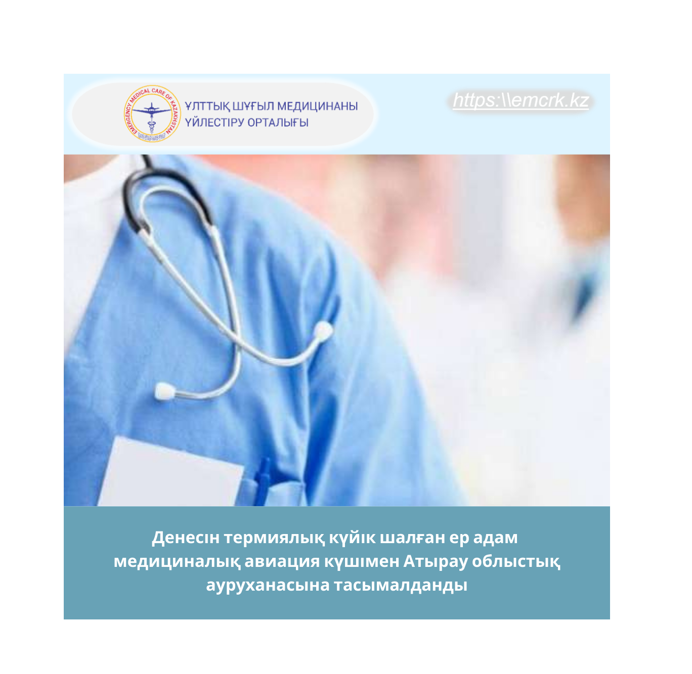 Денесін термиялық күйік шалған ер адам медициналық авиация күшімен Атырау облыстық ауруханасына тасымалданды