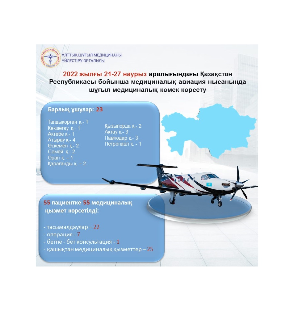 2022 жылғы 21-27 наурыз аралығындағы Қазақстан Республикасы бойынша медициналық авиация нысанында шұғыл медициналық көмек көрсету