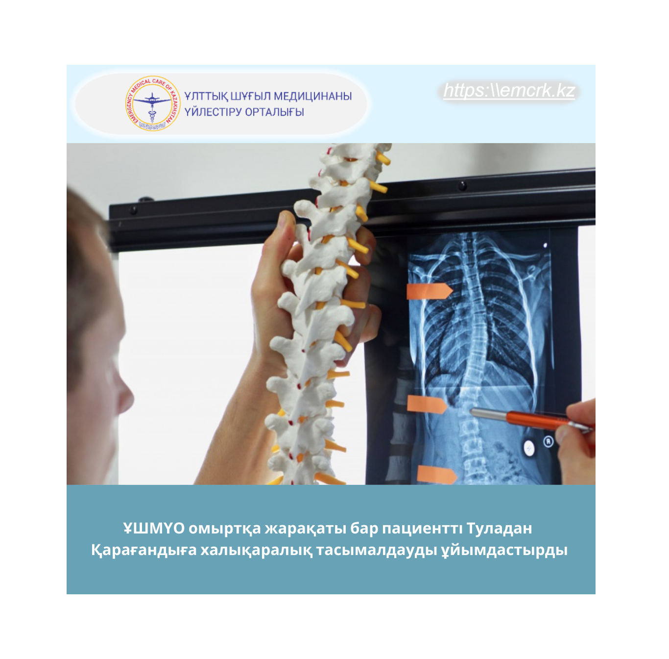 ҰШМҮО омыртқа жарақаты бар пациентті Туладан Қарағандыға халықаралық тасымалдауды ұйымдастырды