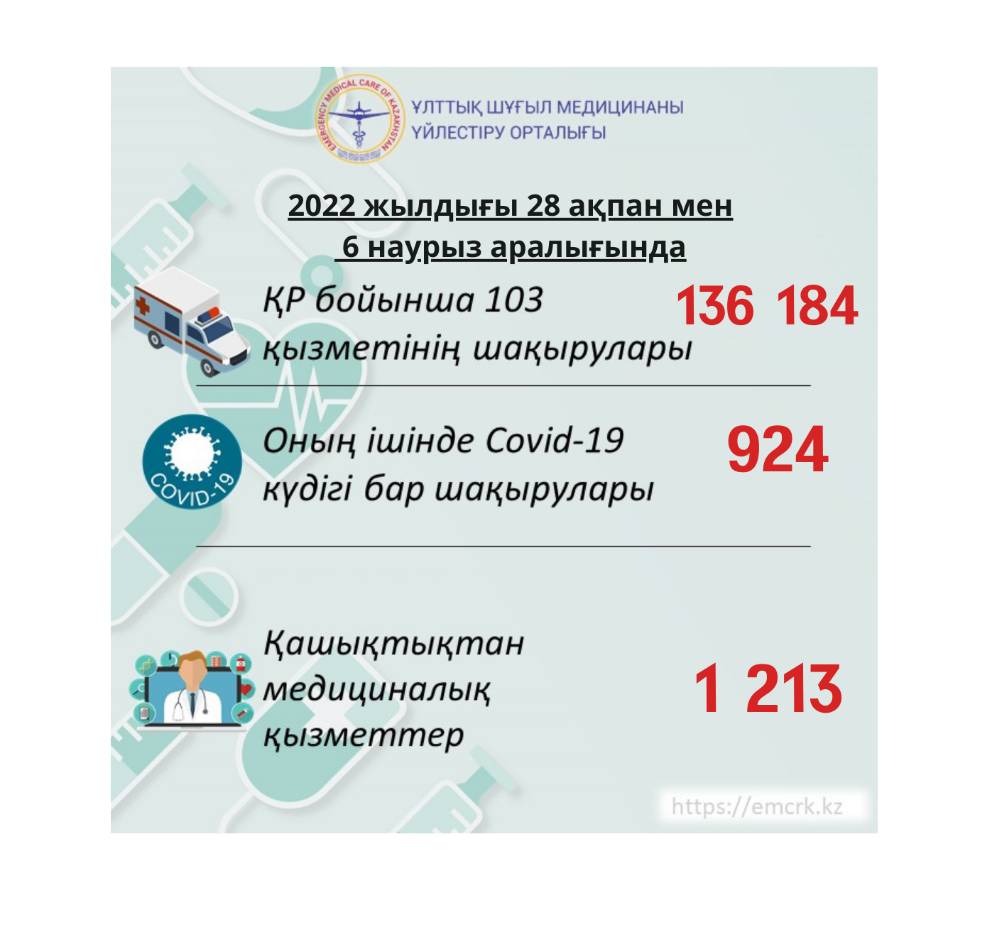 Жедел медициналық жәрдем, оның ішінде КВИ-ға шақырулар бойынша, сондай-ақ қашықтан көрсетілетін медициналық қызметтер туралы ақпарат
