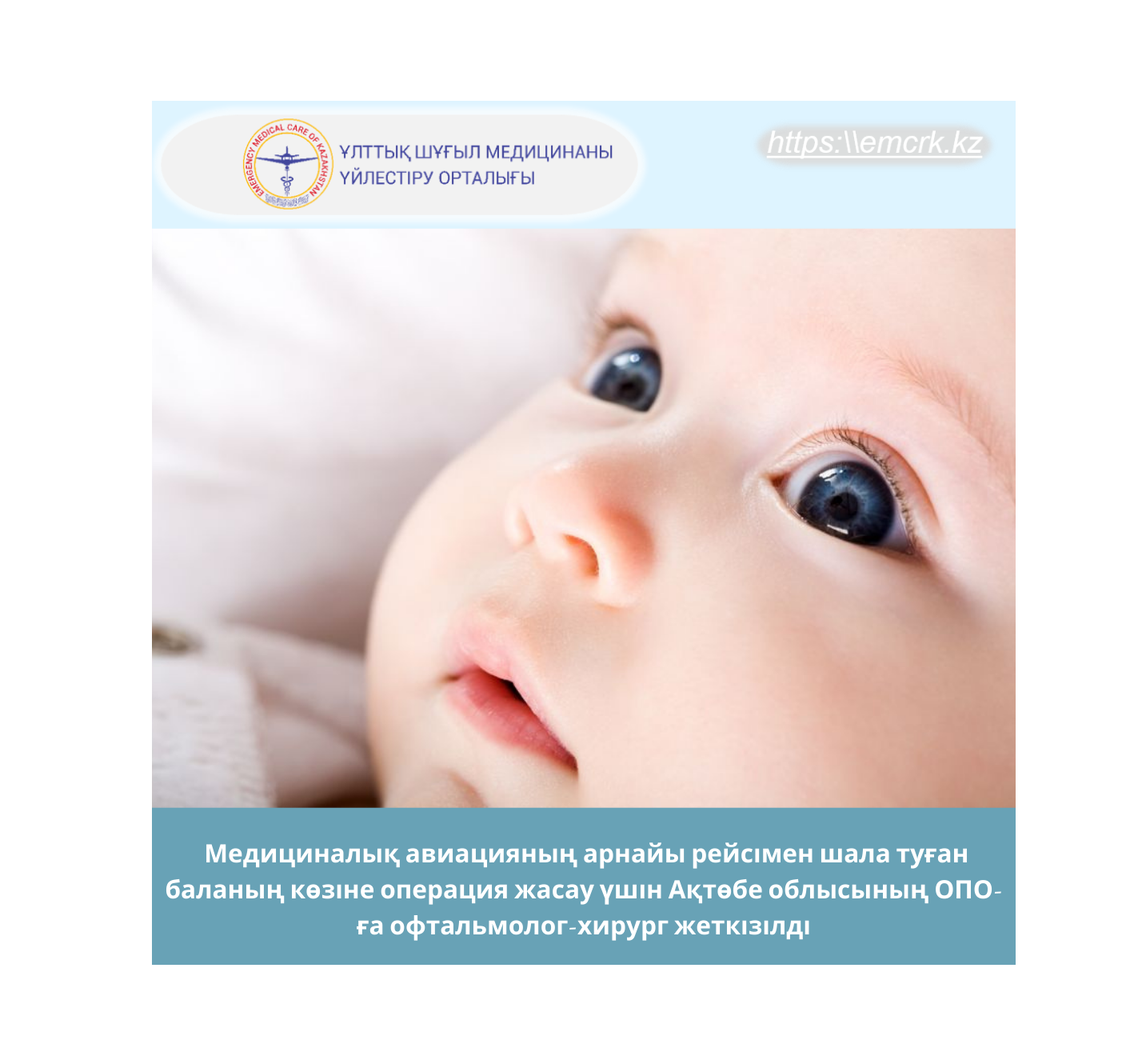 Медициналық авиацияның арнайы рейсімен шала туған баланың көзіне операция жасау үшін Ақтөбе облысының ОПО-ға офтальмолог-хирург жеткізілді