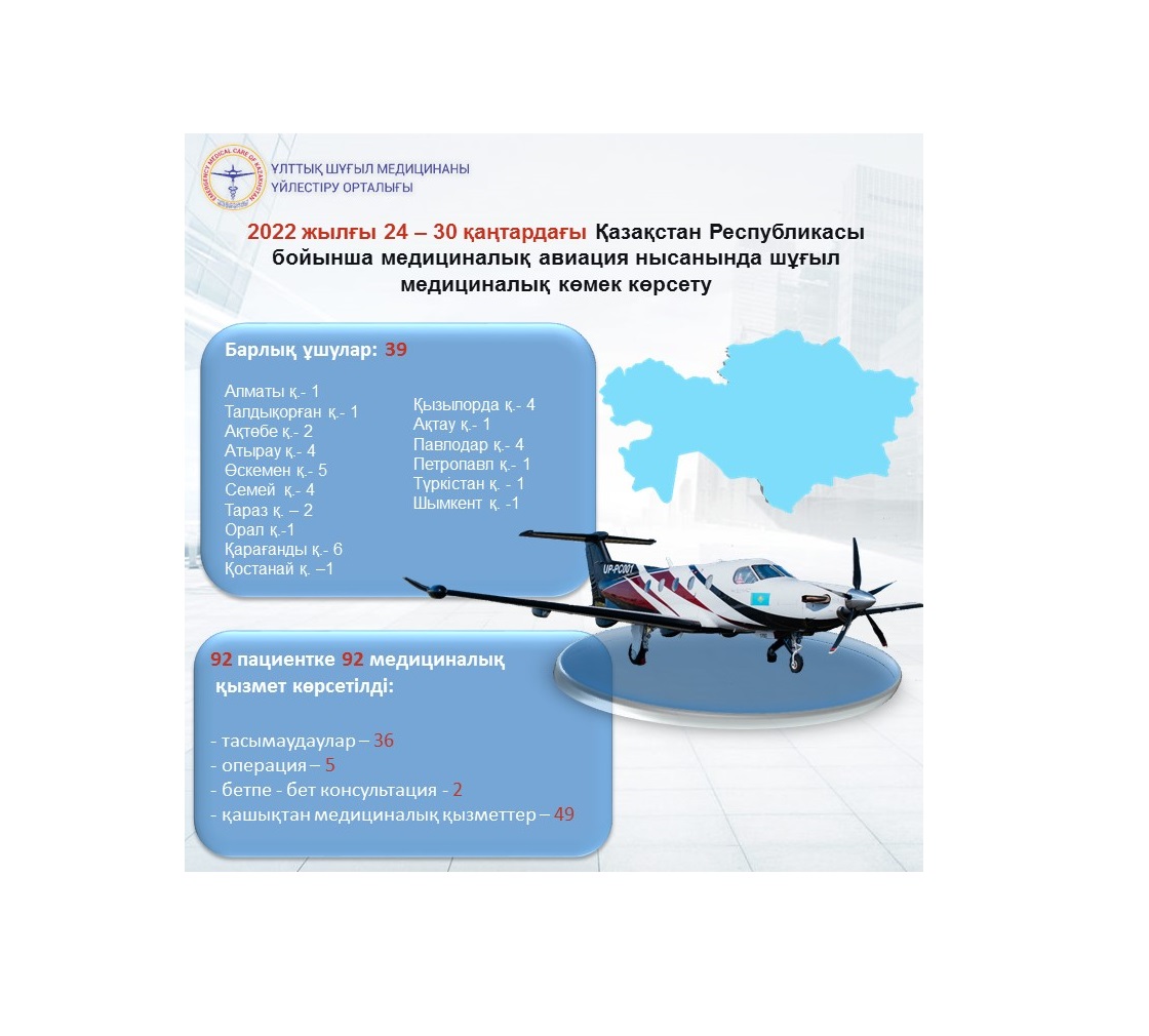 2022 жылғы 24-30 қаңтардағы Қазақстан Республикасы бойынша медициналық авиация нысанында шұғыл медициналық көмек көрсету