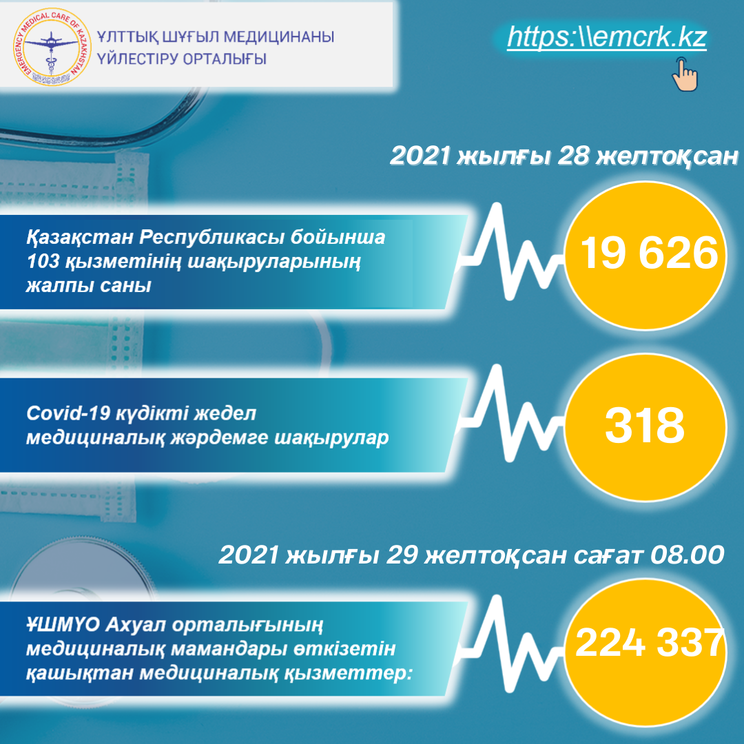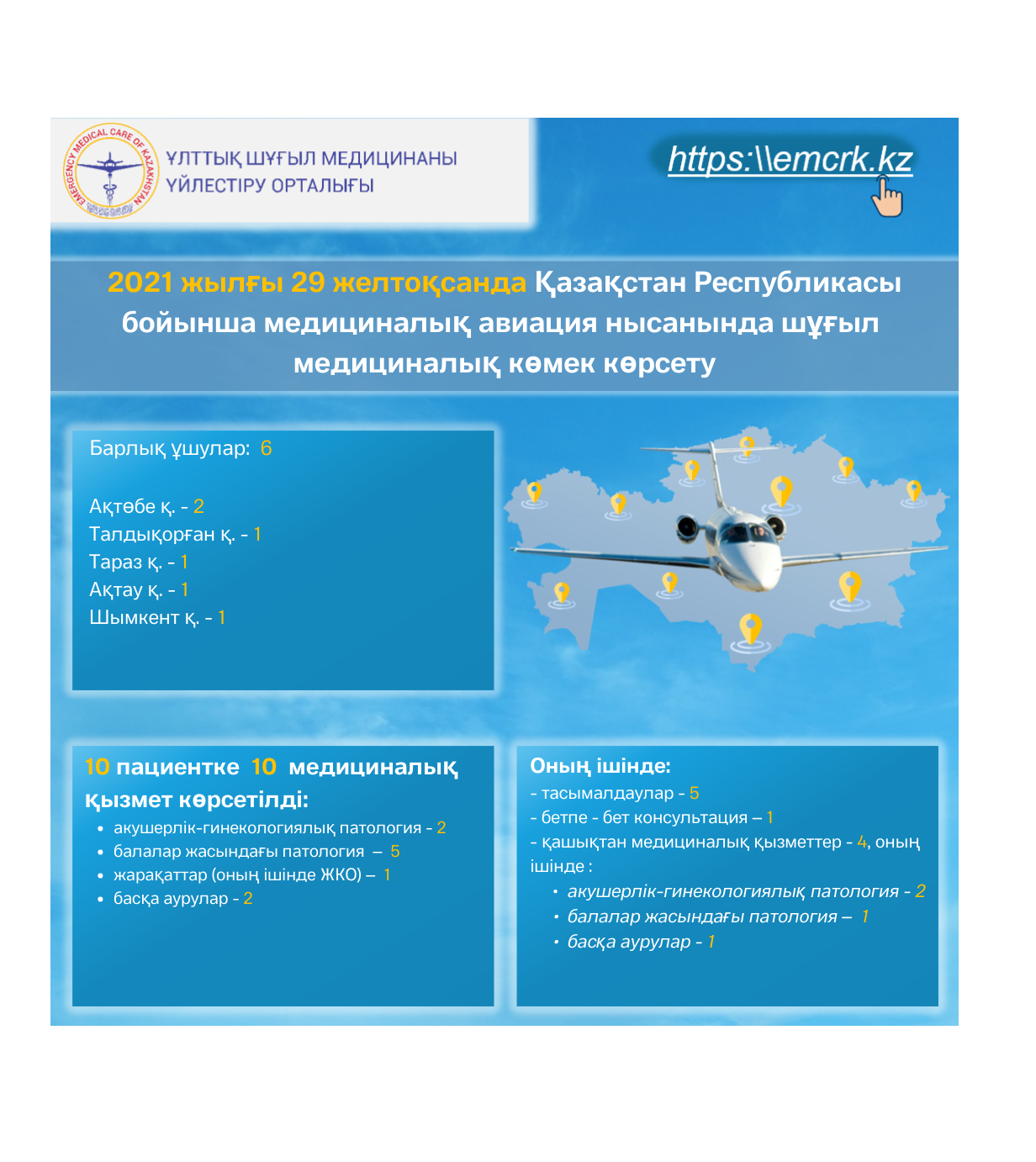 2021 жылғы 29 желтоқсанда Қазақстан Республикасы бойынша медициналық авиация нысанында шұғыл медициналық көмек көрсету.