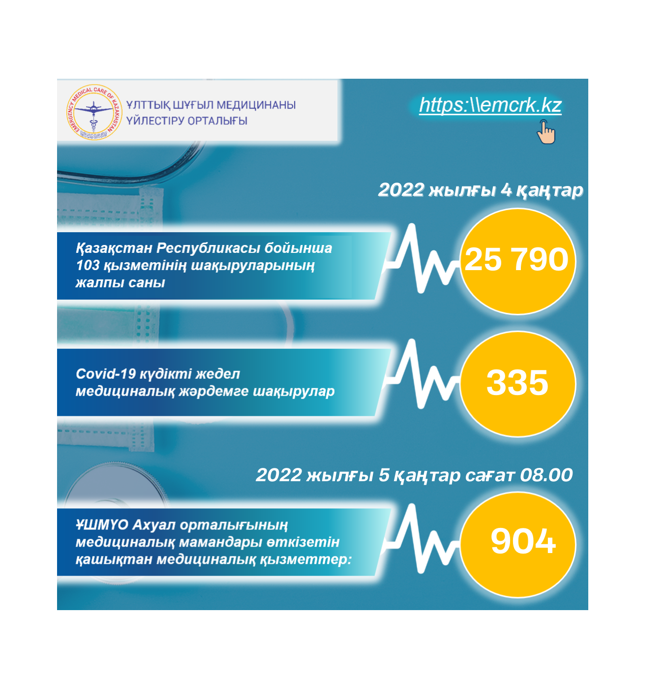 Жедел медициналық жәрдем, оның ішінде КВИ-ға шақырулар бойынша, сондай-ақ қашықтан көрсетілетін медициналық қызметтер туралы ақпарат.