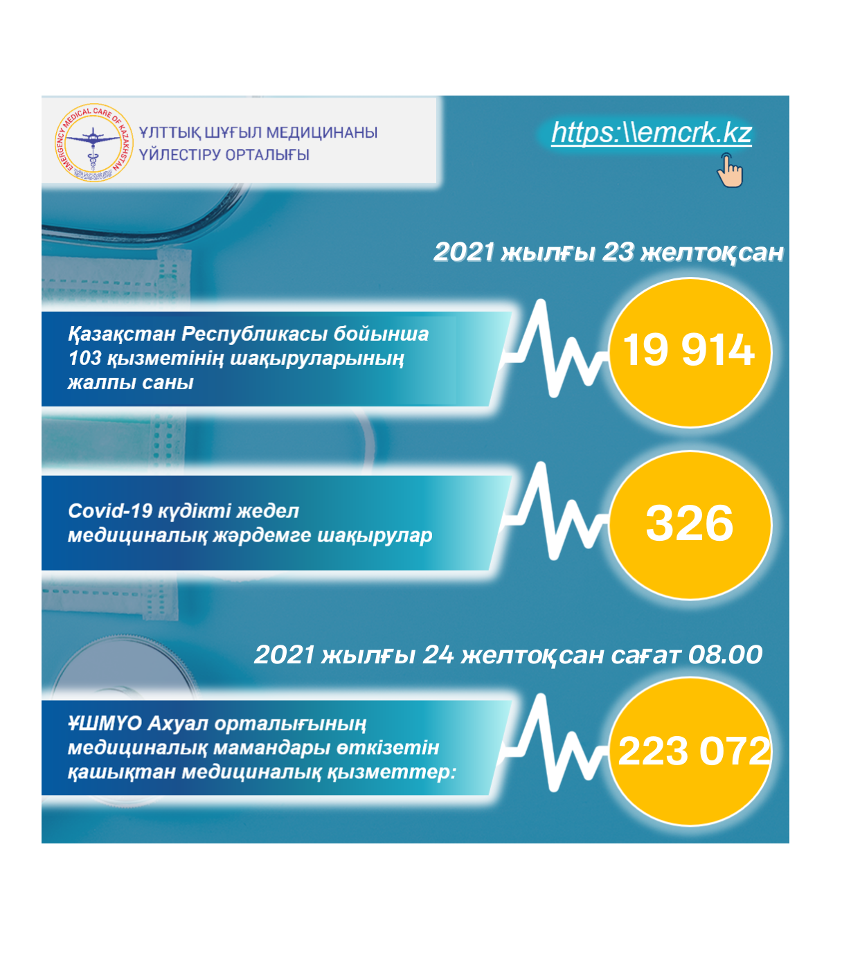2021 жылғы 26 желтоқсанда Қазақстан Республикасы бойынша медициналық авиация нысанында шұғыл медициналық көмек көрсету.