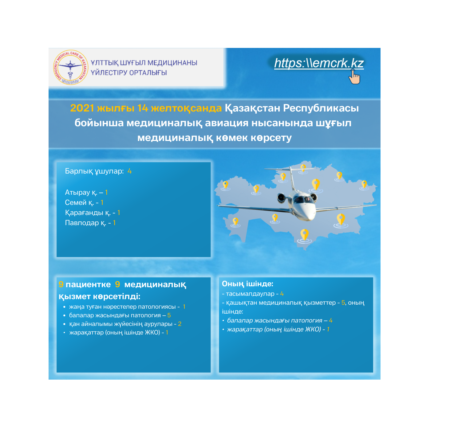 2021 жылғы 14 желтоқсанда Қазақстан Республикасы бойынша медициналық авиация нысанында шұғыл медициналық көмек көрсету