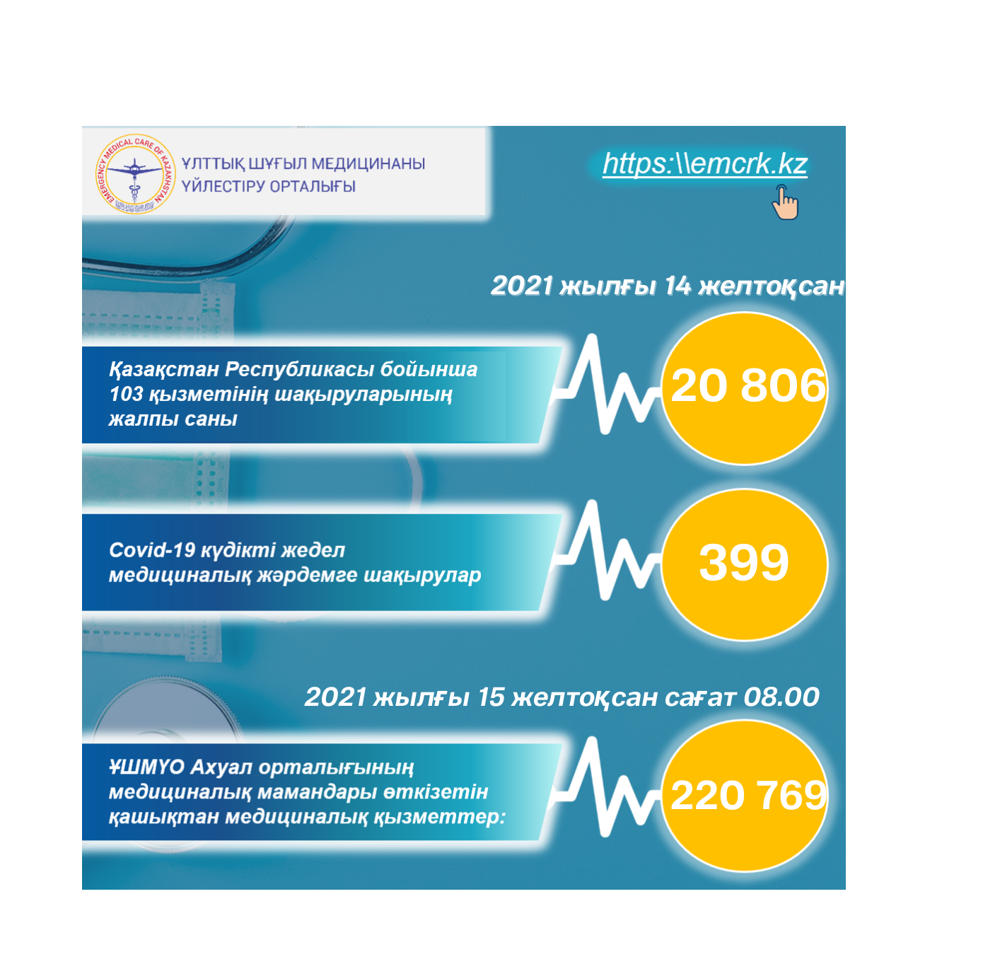Жедел медициналық жәрдем, оның ішінде КВИ-ға шақырулар бойынша, сондай-ақ қашықтан көрсетілетін медициналық қызметтер туралы ақпарат.
