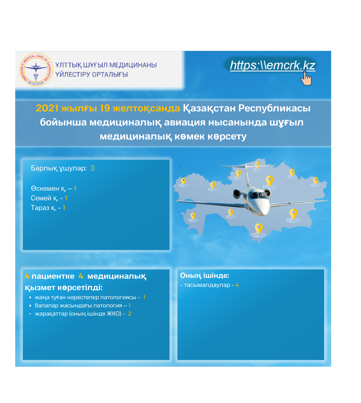 2021 жылғы 19 желтоқсанда Қазақстан Республикасы бойынша медициналық авиация нысанында шұғыл медициналық көмек көрсету