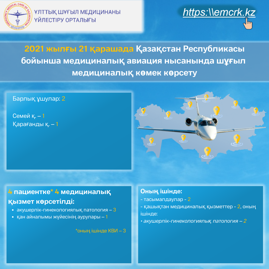 2021 жылғы 21 желтоқсанда Қазақстан Республикасы бойынша медициналық авиация нысанында шұғыл медициналық көмек көрсету