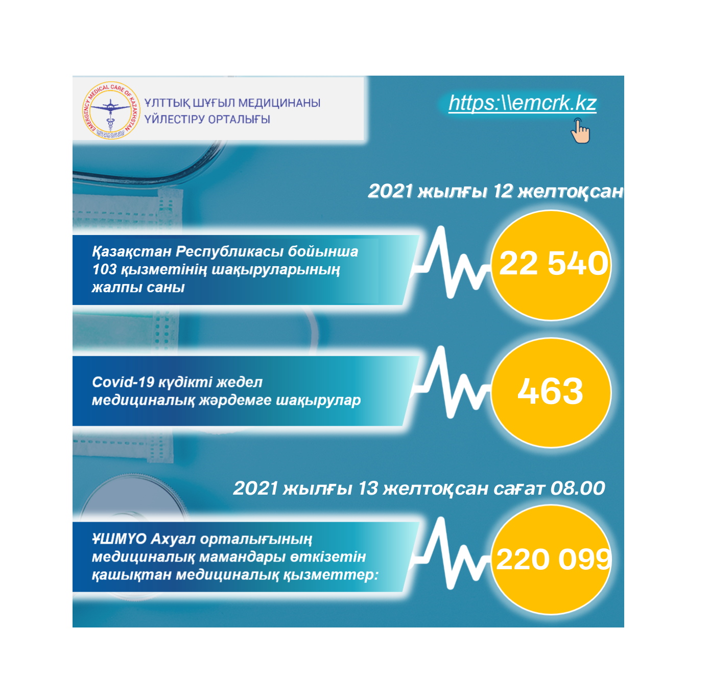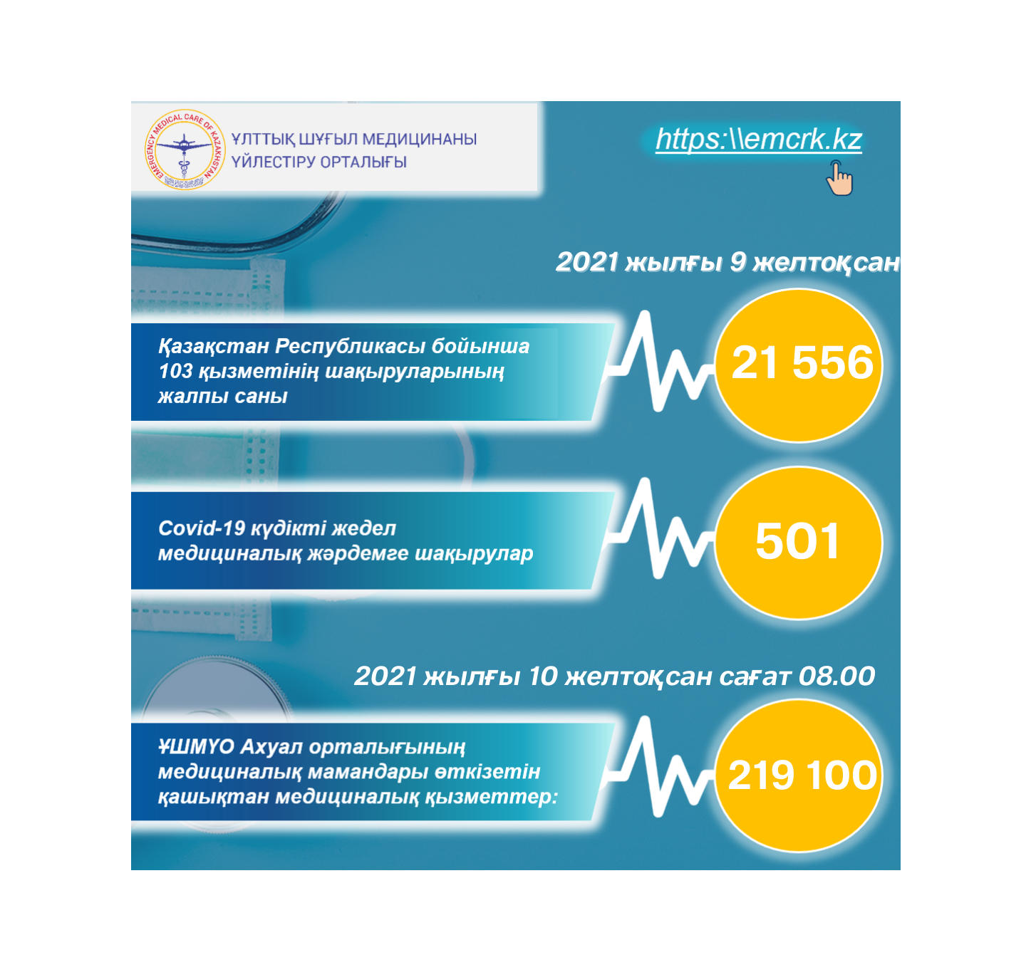 Жедел медициналық жәрдем, оның ішінде КВИ-ға шақырулар бойынша, сондай-ақ қашықтан көрсетілетін медициналық қызметтер туралы ақпарат
