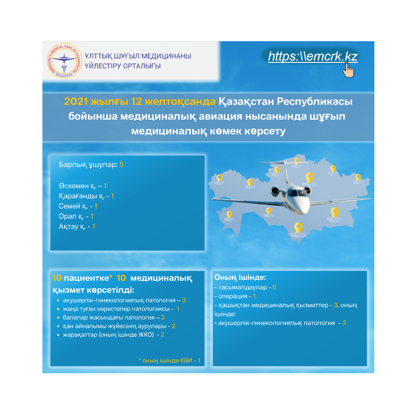 2021 жылғы 12 желтоқсанда Қазақстан Республикасы бойынша медициналық авиация нысанында шұғыл медициналық көмек көрсету