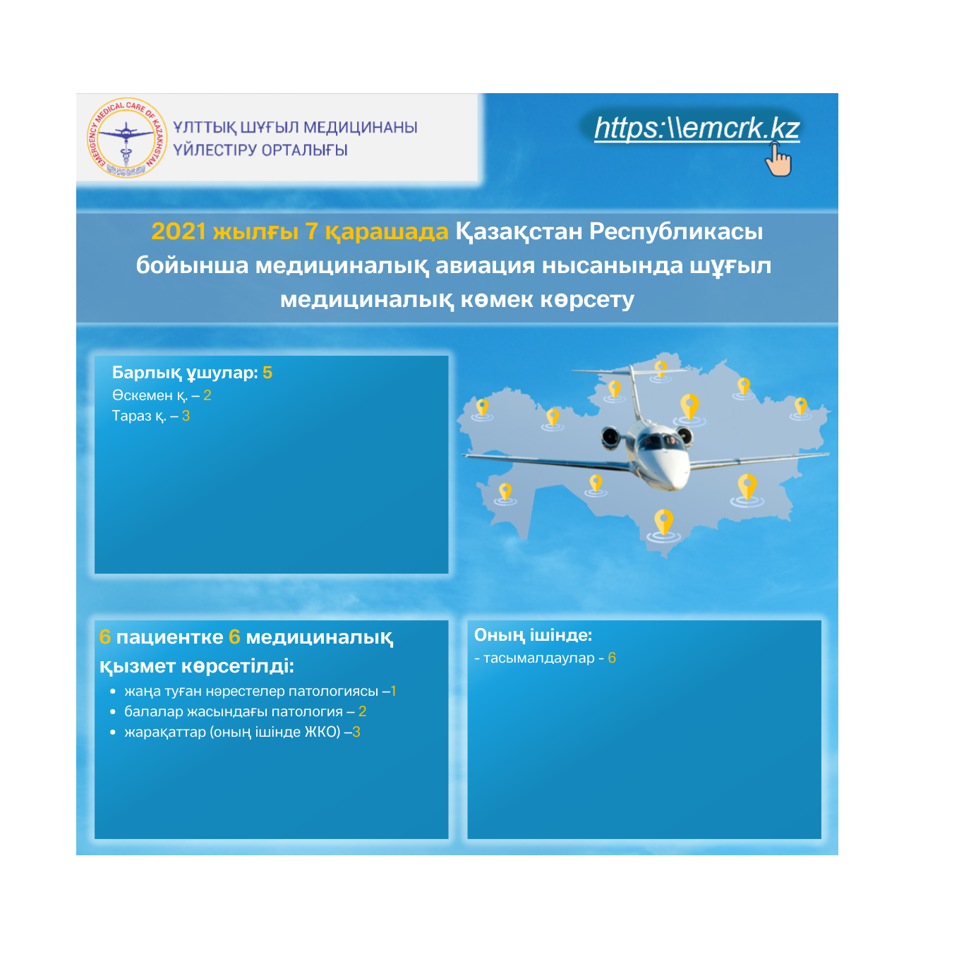 2021 жылғы 7 қарашада Қазақстан Республикасы бойынша медициналық авиация нысанында шұғыл медициналық көмек көрсету