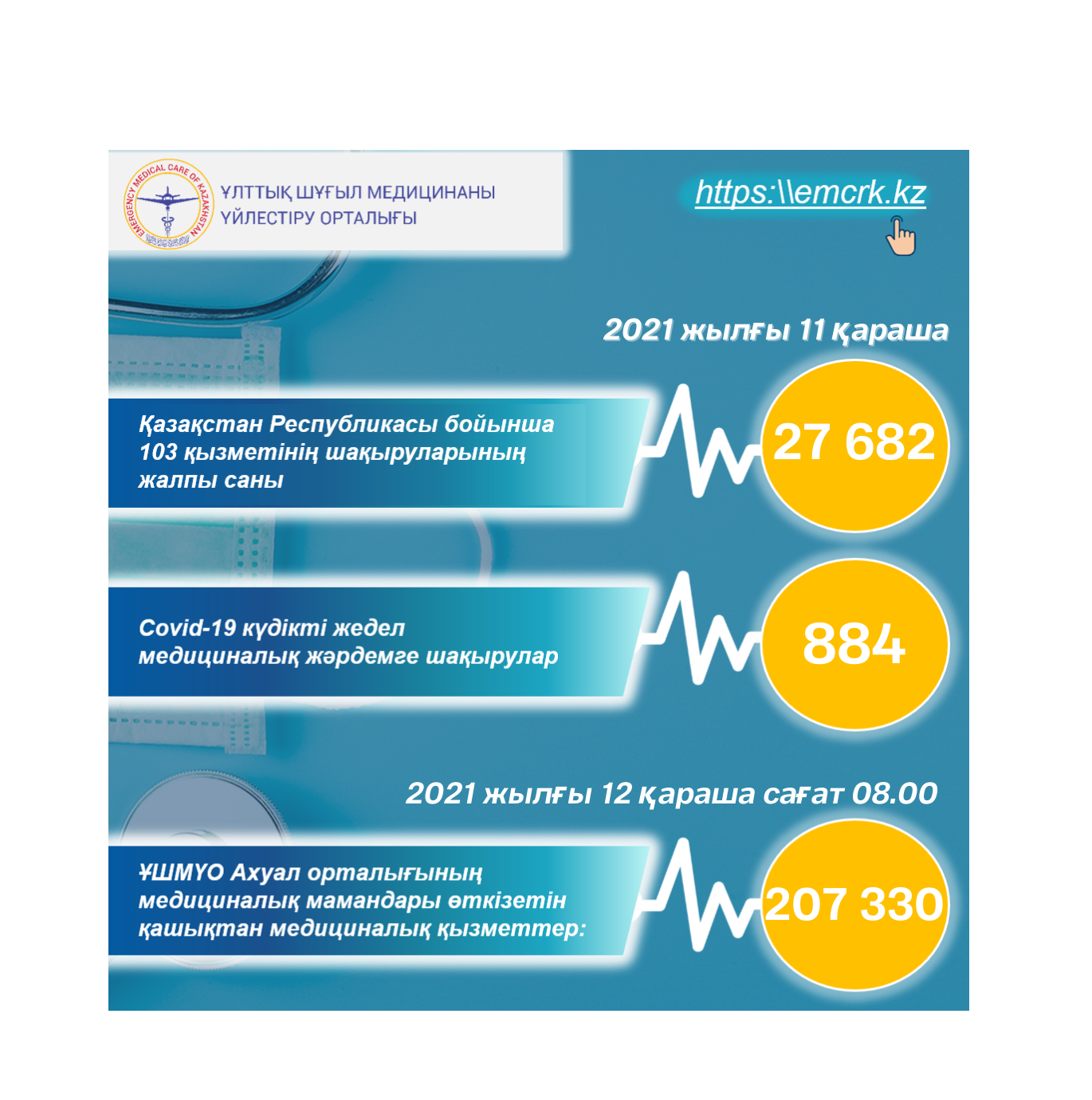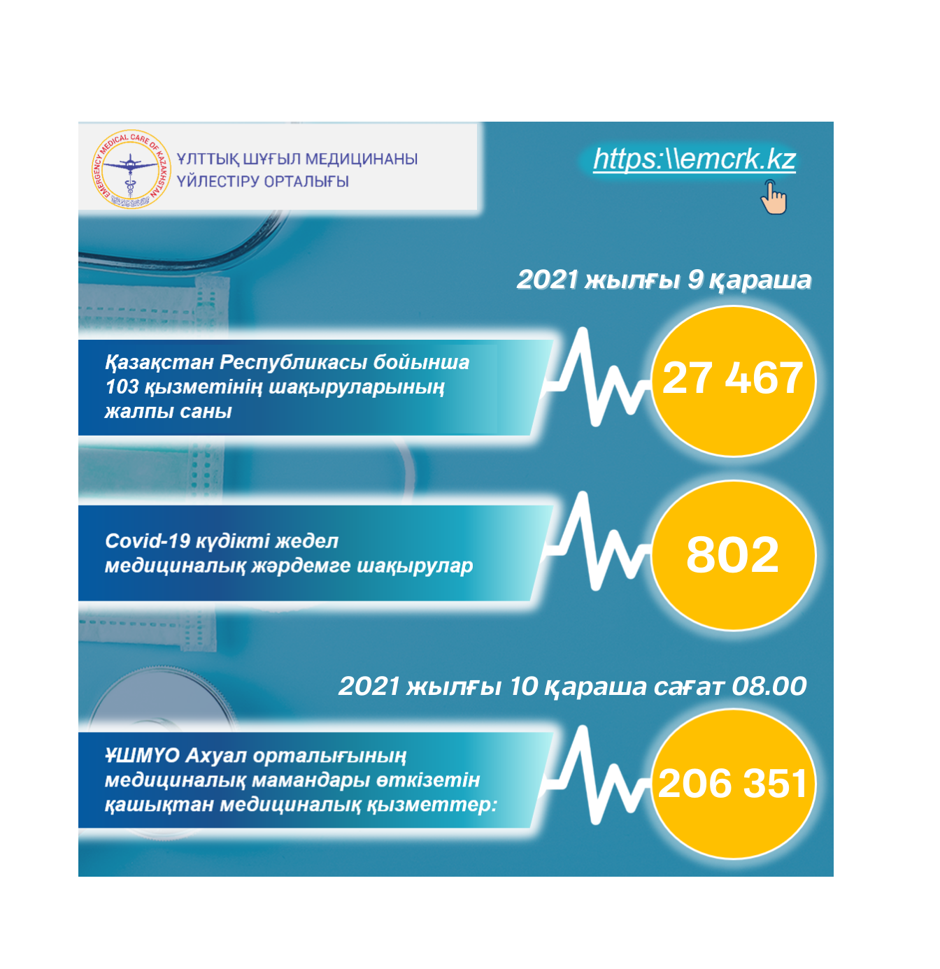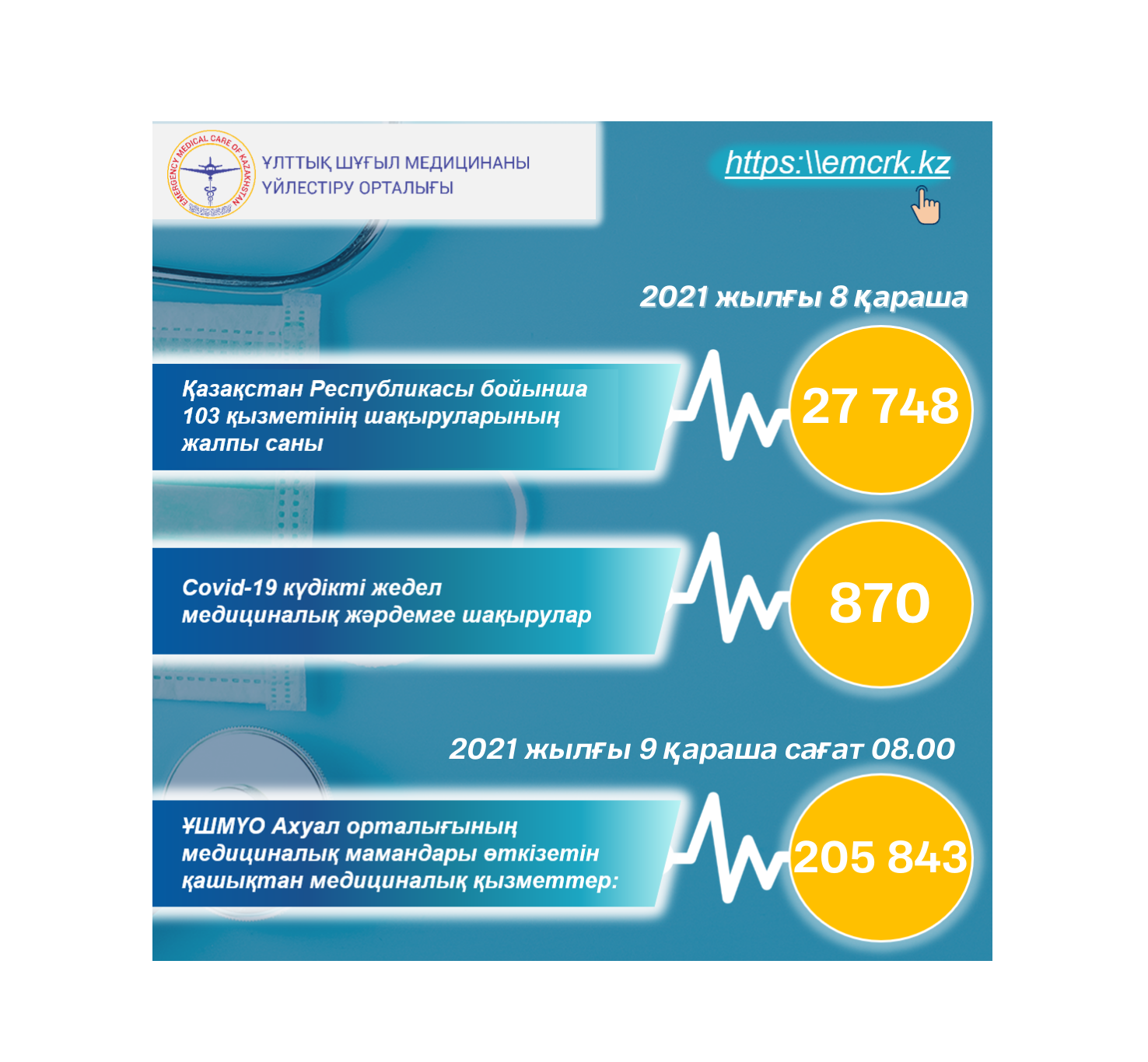 Жедел медициналық жәрдем, оның ішінде КВИ-ға шақырулар бойынша, сондай-ақ қашықтан көрсетілетін медициналық қызметтер туралы ақпарат