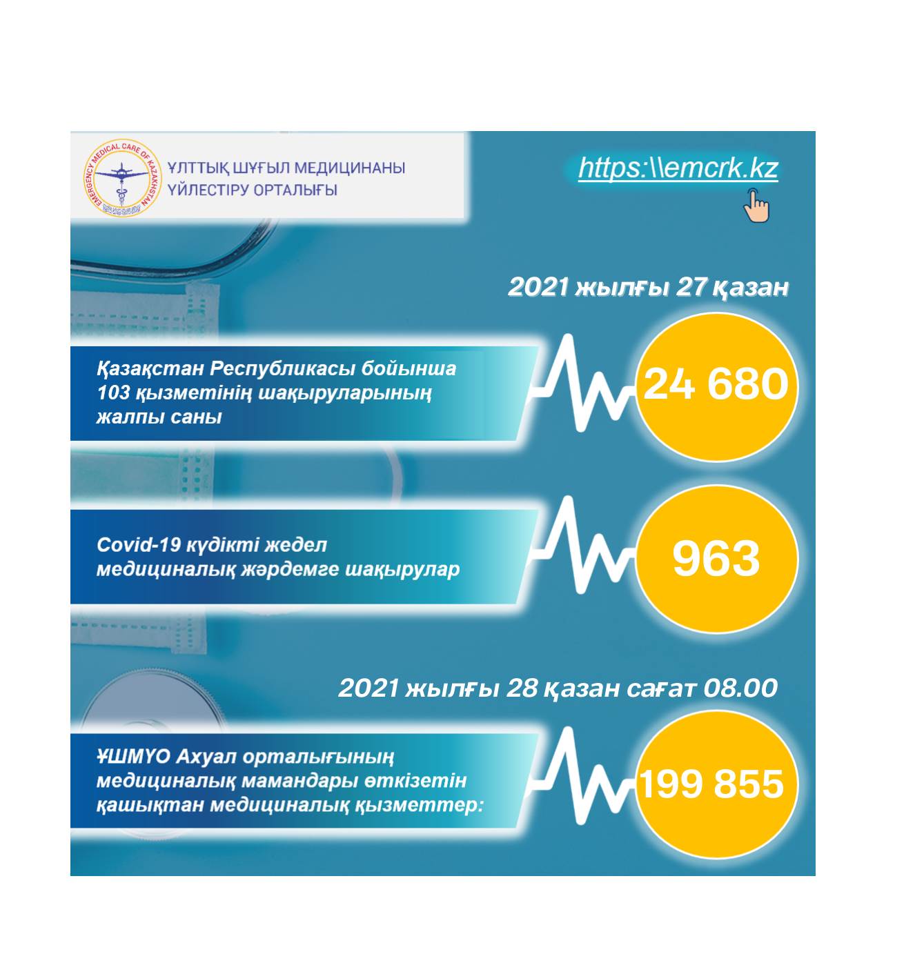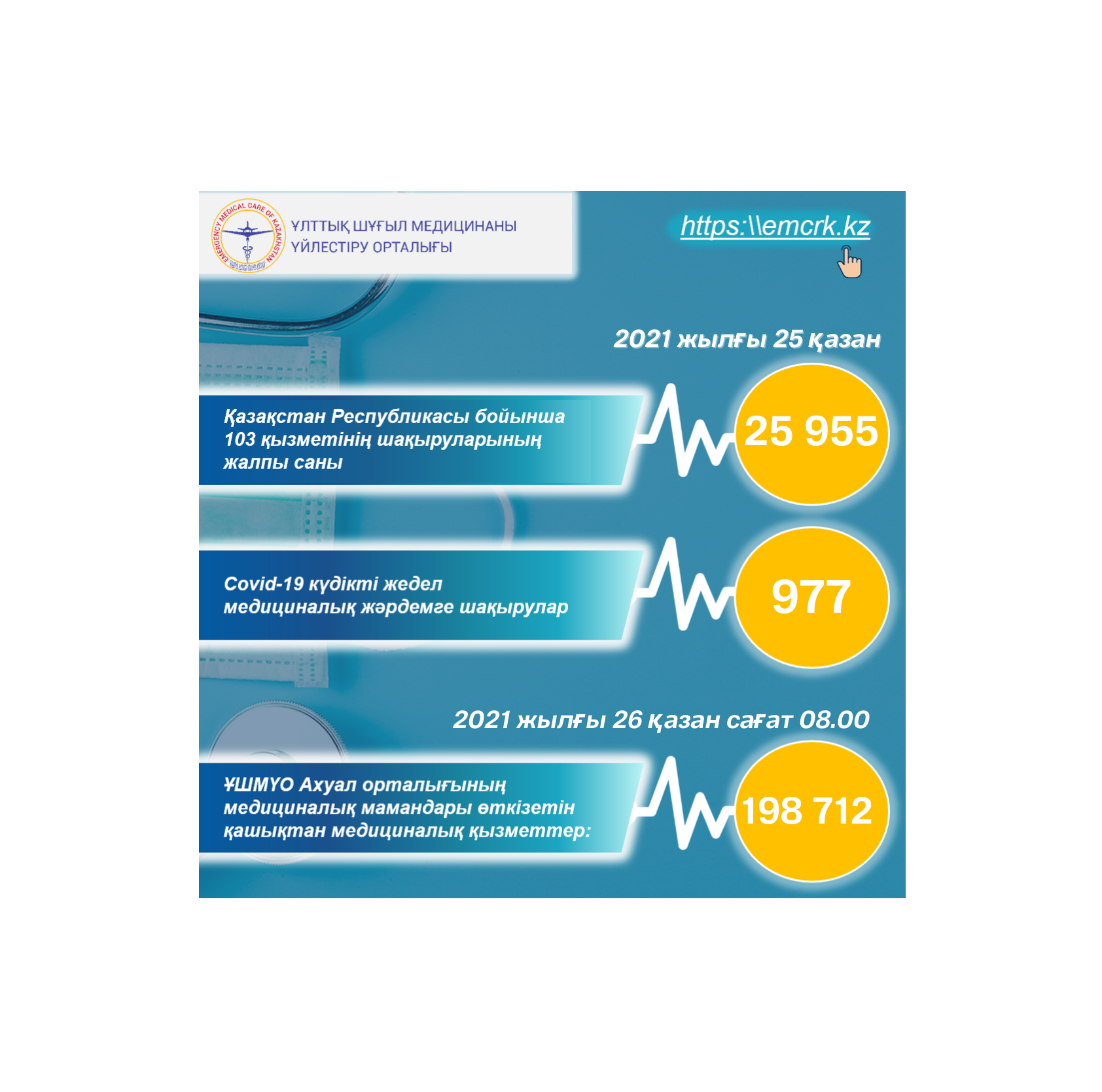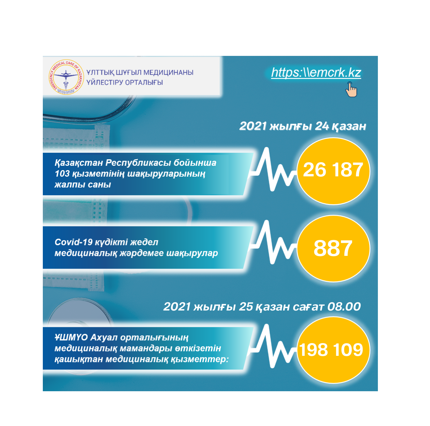 Жедел медициналық жәрдем, оның ішінде КВИ-ға шақырулар бойынша, сондай-ақ қашықтан көрсетілетін медициналық қызметтер туралы ақпарат