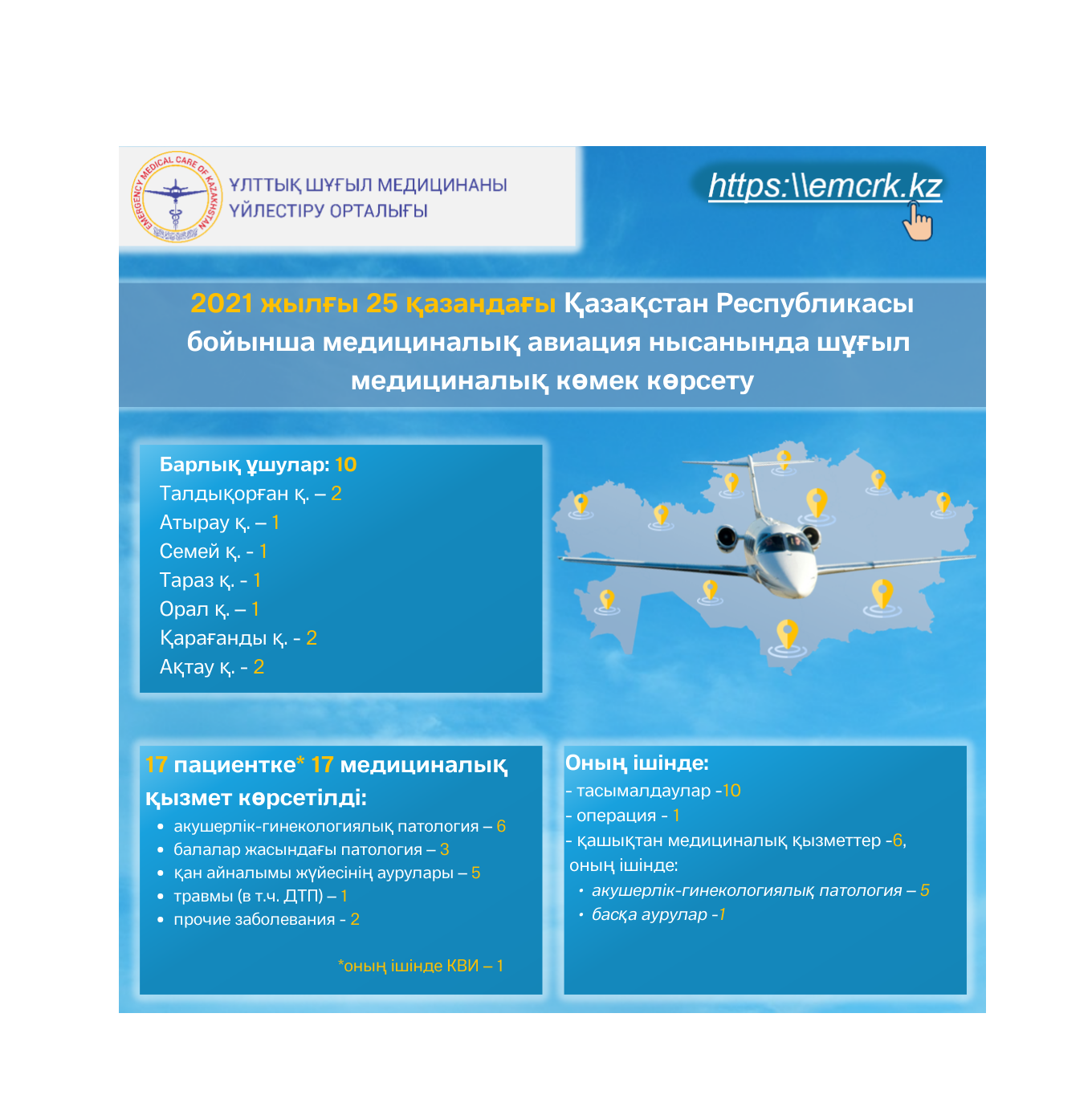 2021 жылғы 25 қазандағы Қазақстан Республикасы бойынша медициналық авиация нысанында шұғыл медициналық көмек көрсету
