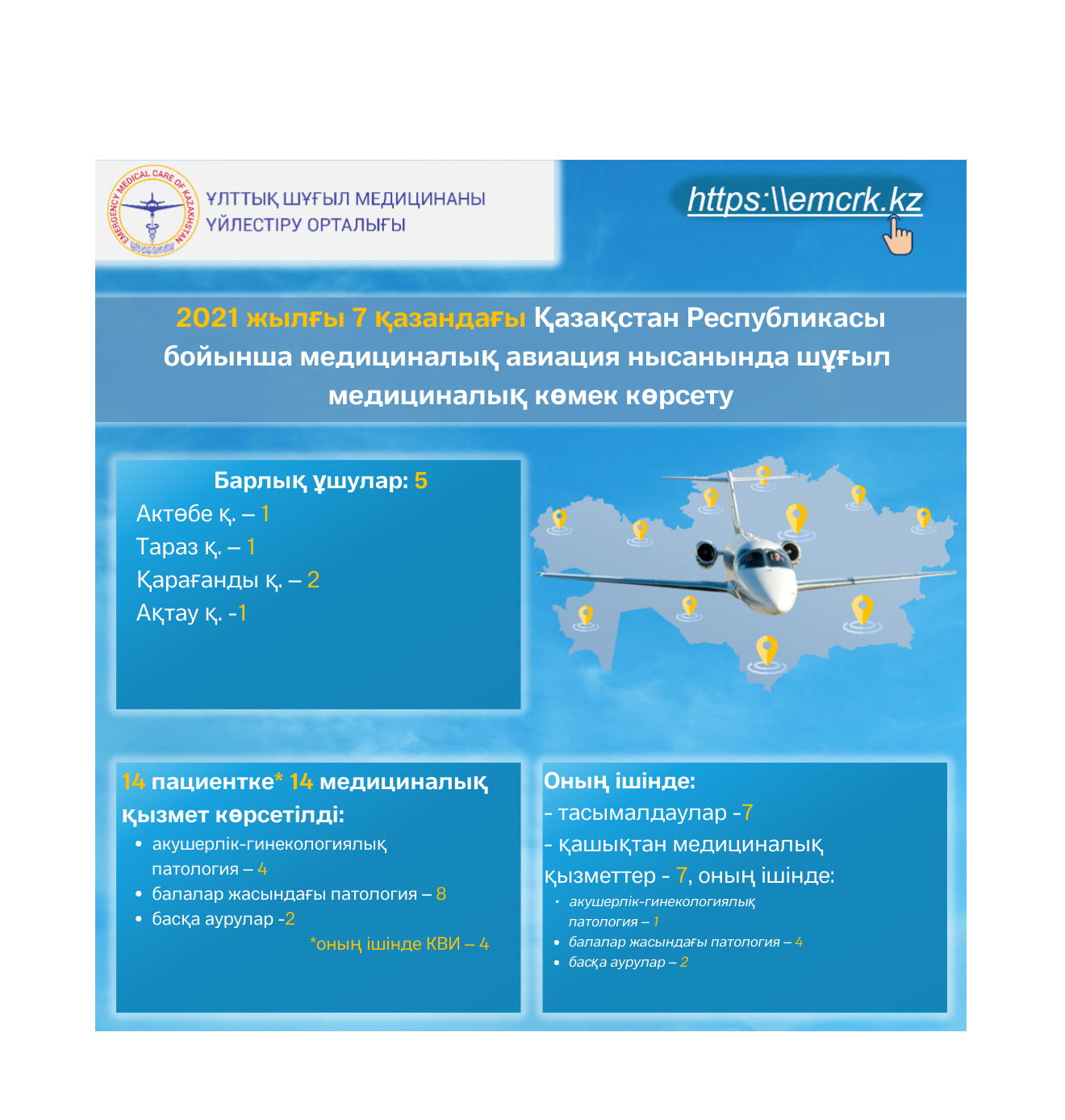 2021 жылғы 7 қазандағы Қазақстан Республикасы бойынша медициналық авиация нысанында шұғыл медициналық көмек көрсету