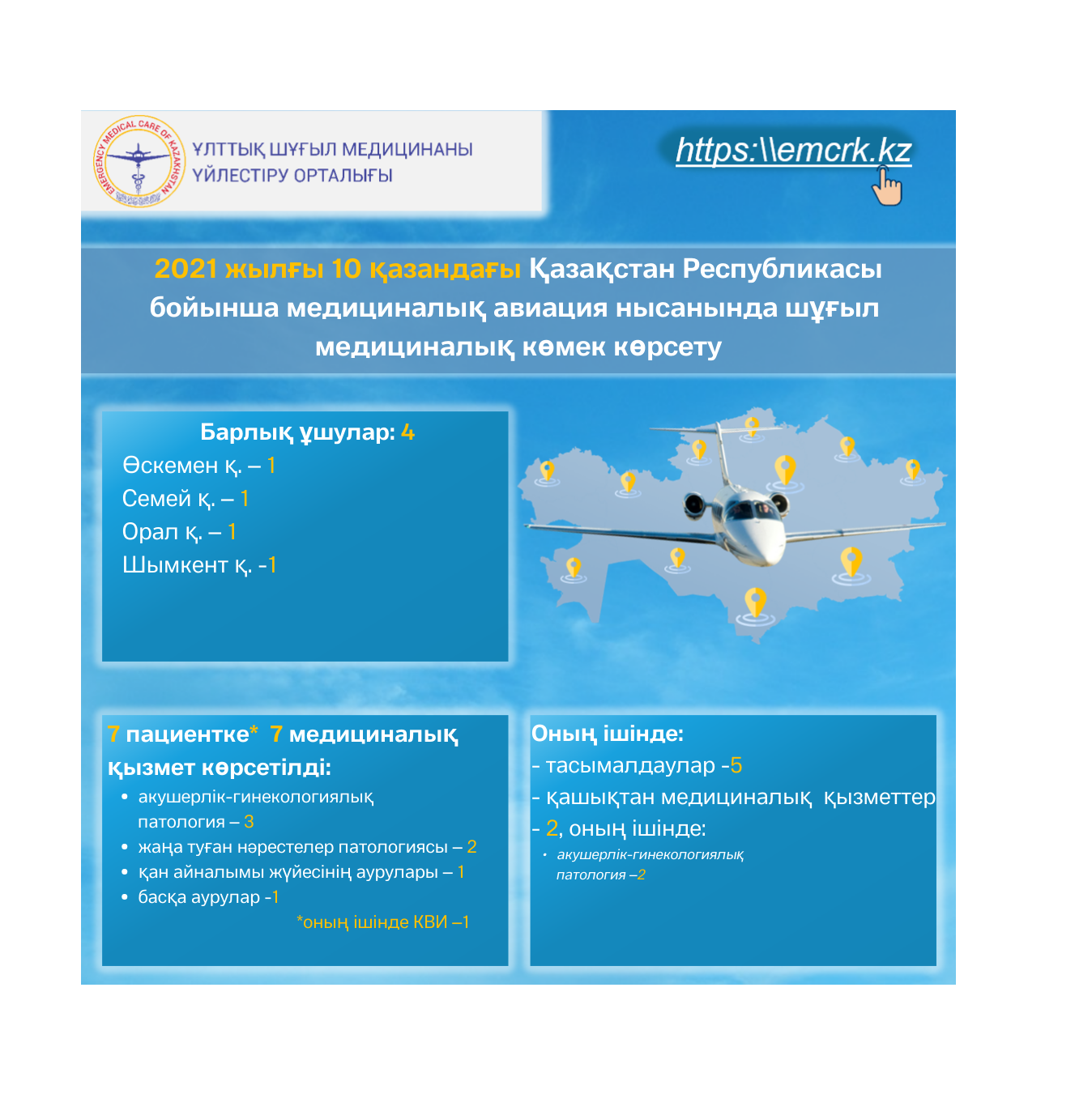 2021 жылғы 10 қазандағы Қазақстан Республикасы бойынша медициналық авиация нысанында шұғыл медициналық көмек көрсету