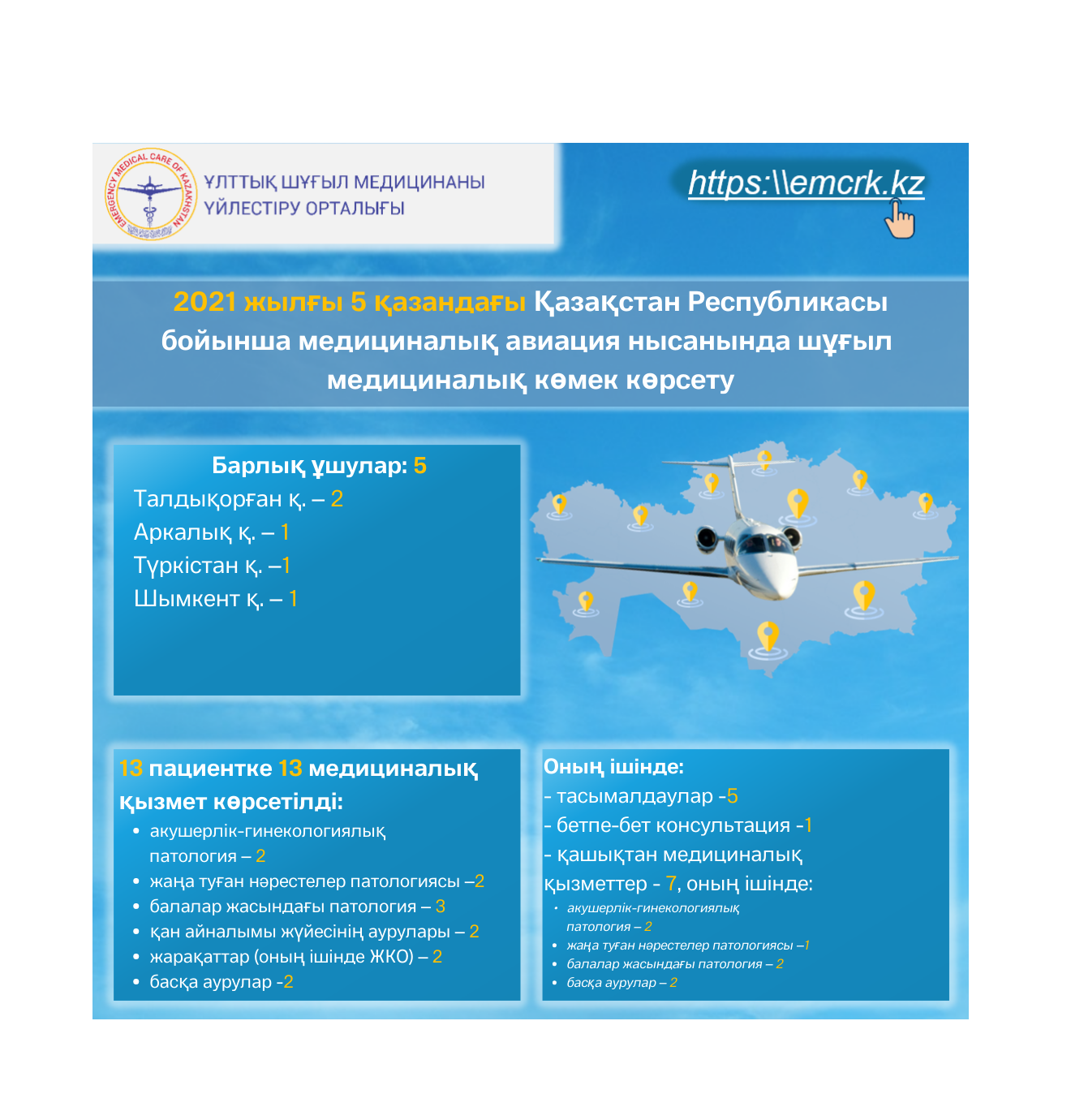 2021 жылғы 5 қазандағы Қазақстан Республикасы бойынша медициналық авиация нысанында шұғыл медициналық көмек көрсету