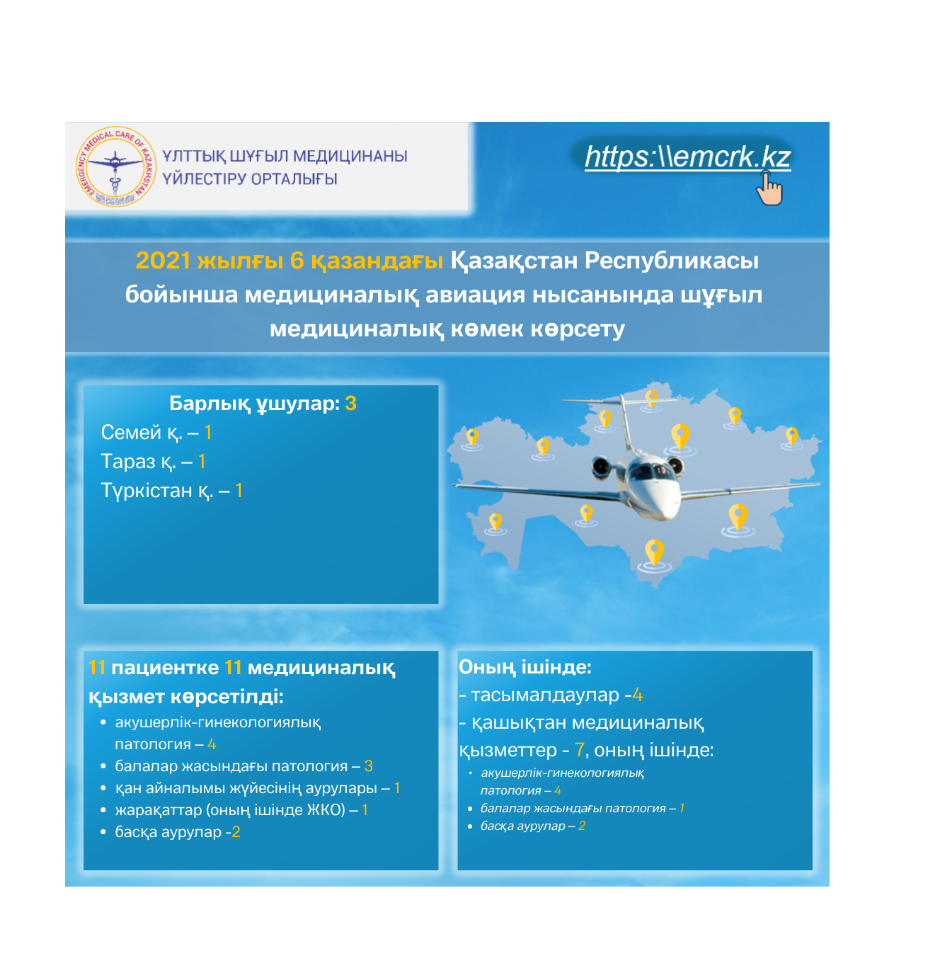 2021 жылғы 6 қазандағы Қазақстан Республикасы бойынша медициналық авиация нысанында шұғыл медициналық көмек көрсету