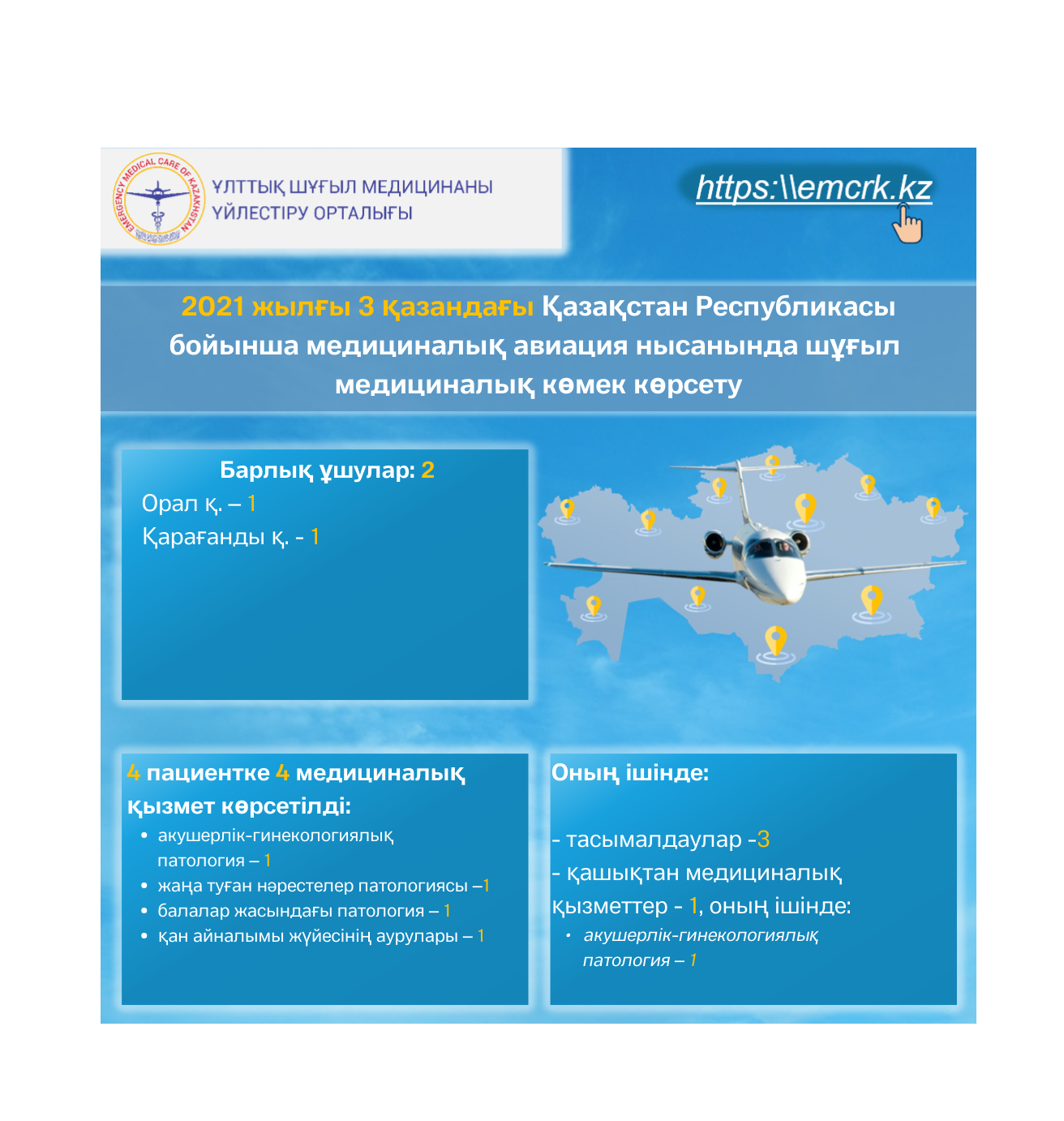 2021 жылғы 3 қазандағы Қазақстан Республикасы бойынша медициналық авиация нысанында шұғыл медициналық көмек көрсету