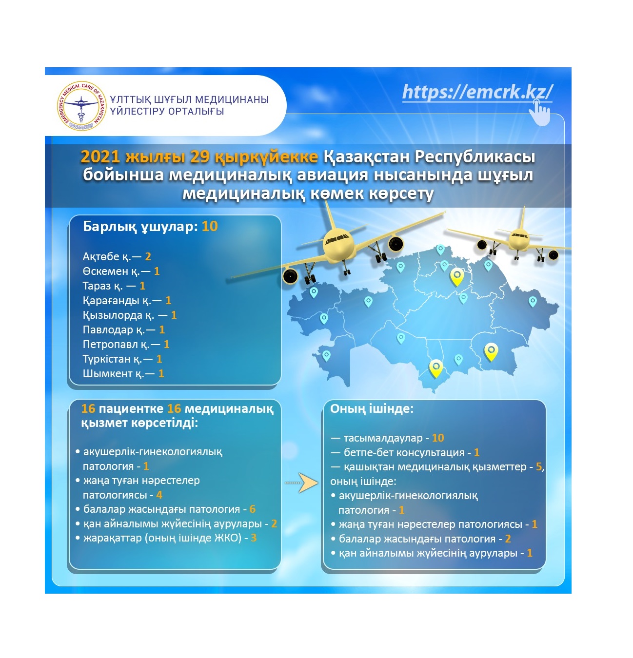 2021 жылғы 29 қыркүйекке Қазақстан Республикасы бойынша медициналық авиация нысанында шұғыл медициналық көмек көрсету