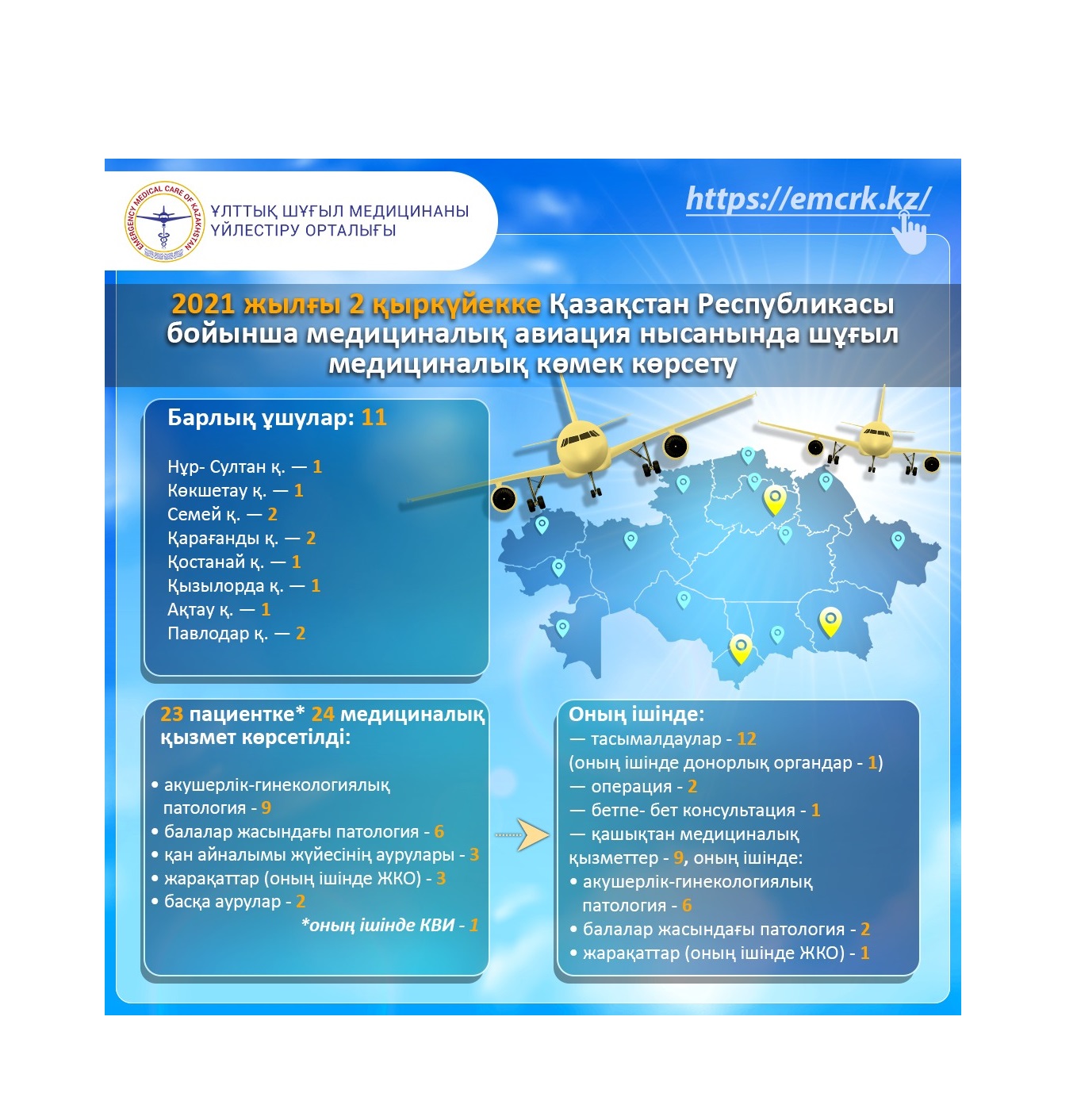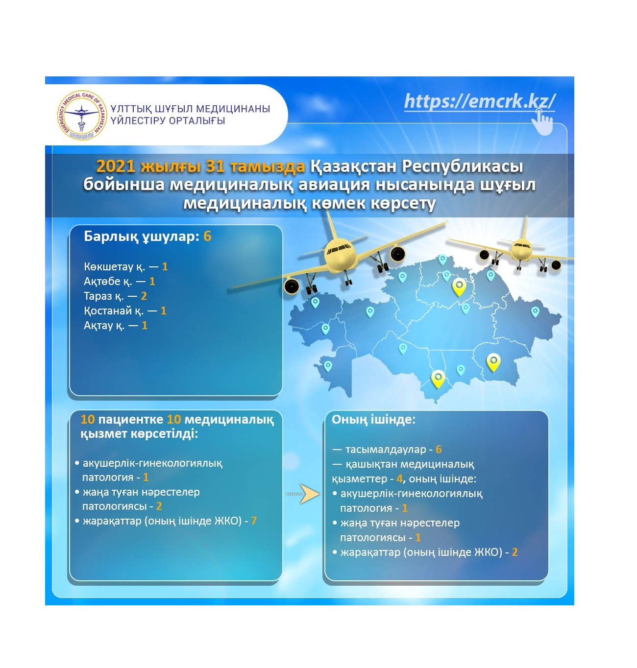 2021 жылғы 31 тамызда Қазақстан Республикасы бойынша медициналық авиация нысанында шұғыл медициналық көмек көрсету