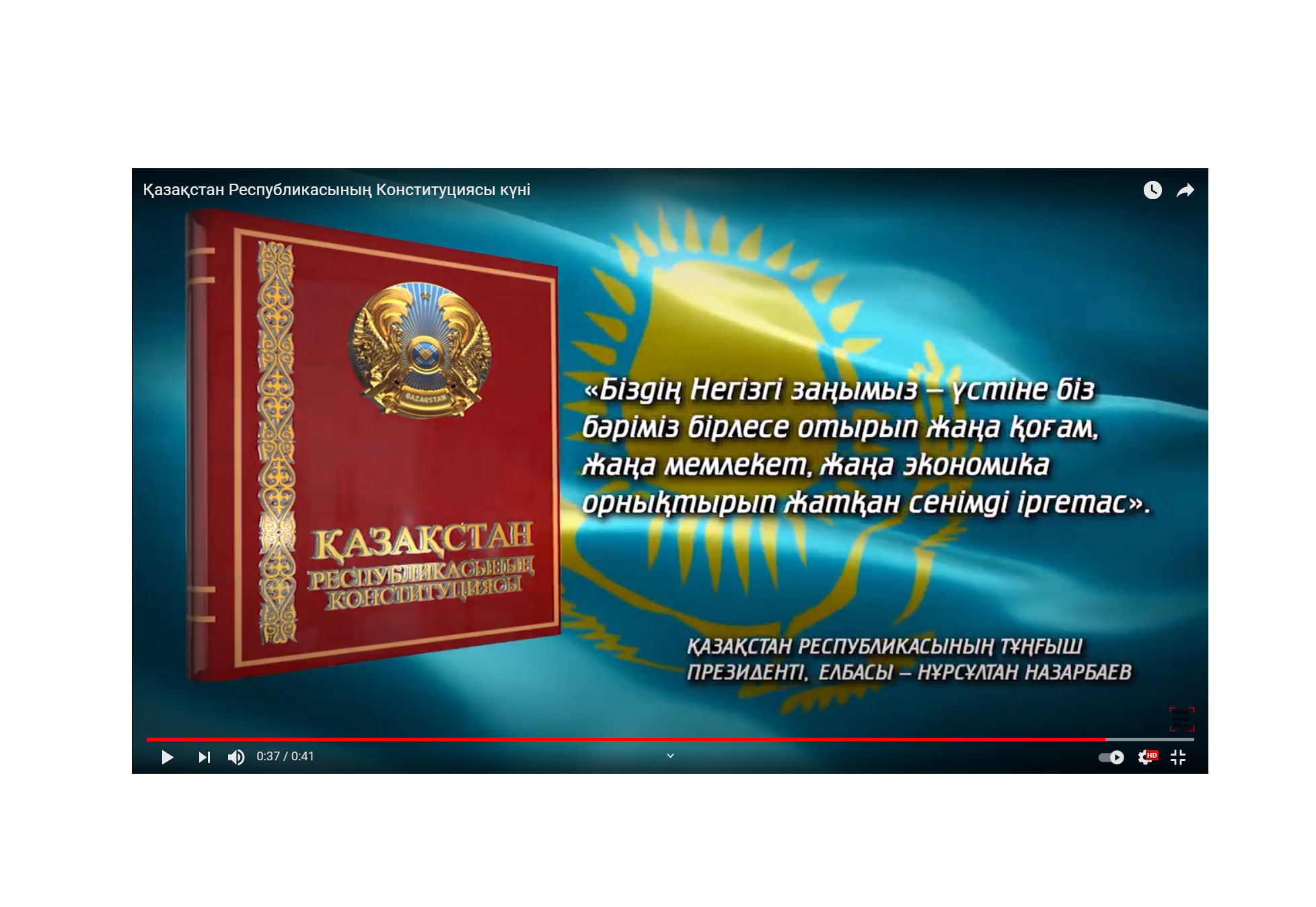 Қазақстан Конституциясының қабылданғанына 26 жыл толуына орай Елбасы кітапханасы Н.Ә. Назарбаевтың Жеке архивіндегі құжаттар мен материалдар негізінде еліміздің басты заңын дайындау тарихынан сыр шертетін бейнеролик дайындады.