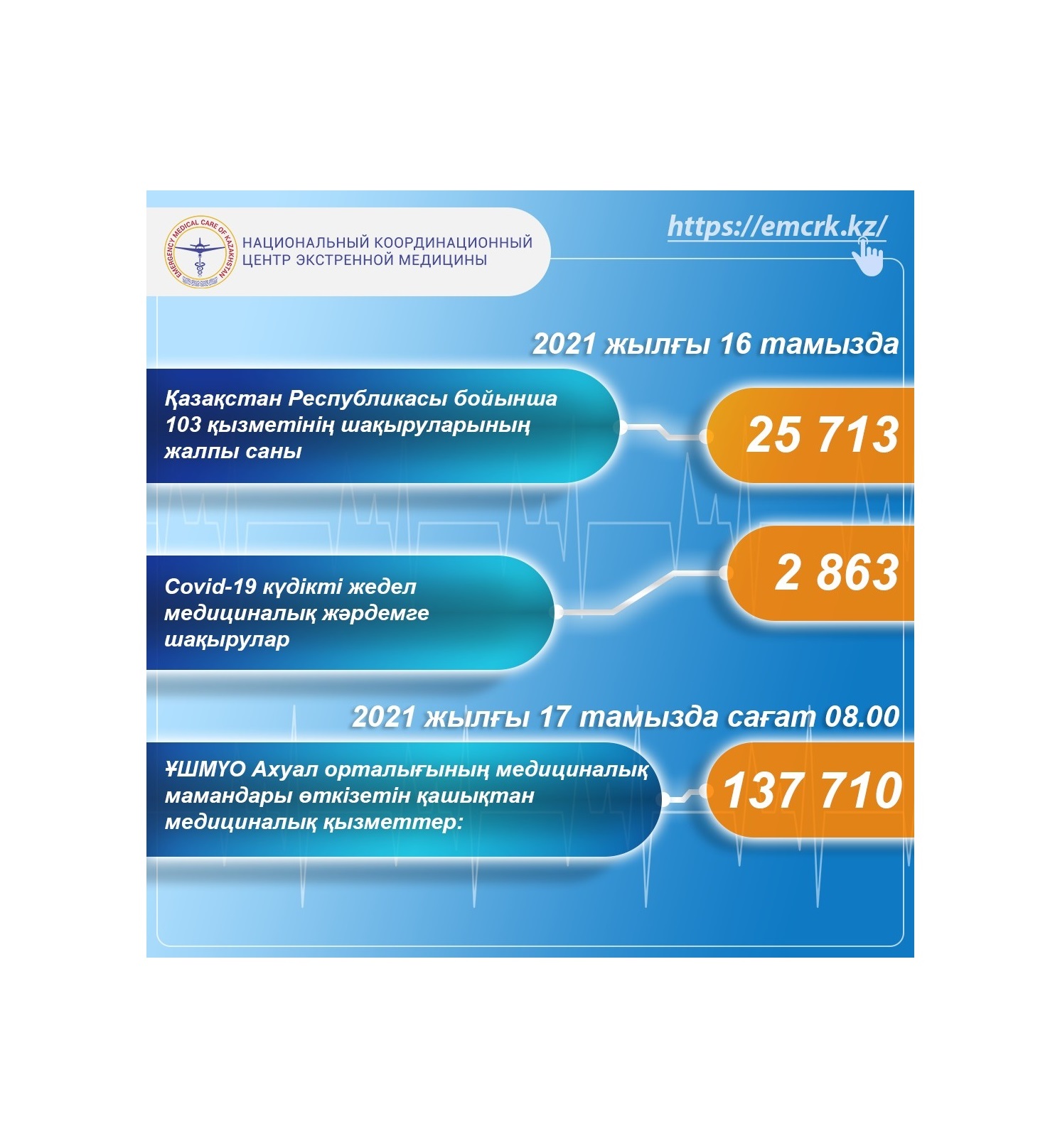 Жедел медициналық жәрдем, оның ішінде КВИ-ға шақырулар бойынша, сондай-ақ қашықтан көрсетілетін медициналық қызметтер туралы ақпарат
