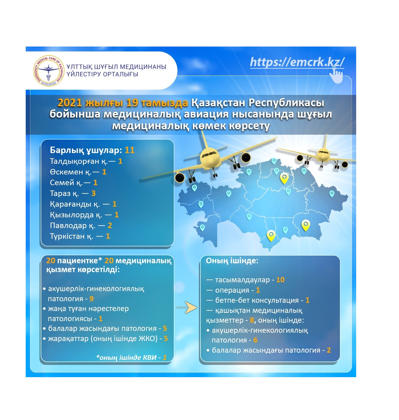 2021 жылғы 19 тамызда Қазақстан Республикасы бойынша медициналық авиация нысанында шұғыл медициналық көмек көрсету