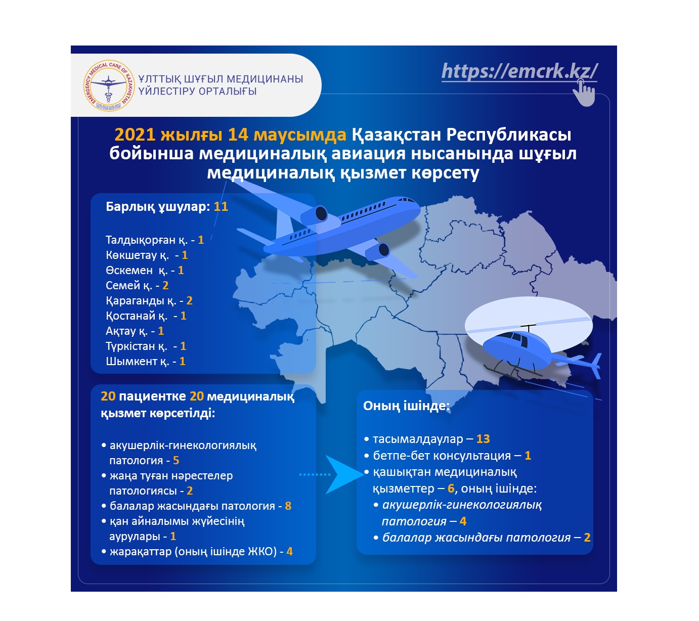 2021 жылғы 14 маусымда Қазақстан Республикасы бойынша медициналық авиация нысанында шұғыл медициналық көмек көрсету