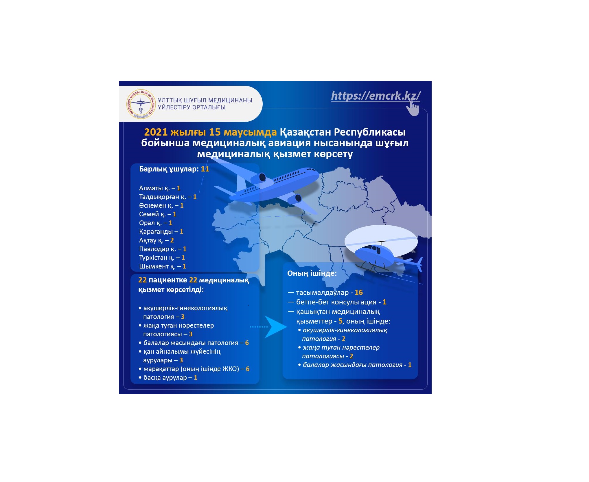 2021 жылғы 15 маусымда Қазақстан Республикасы бойынша медициналық авиация нысанында шұғыл медициналық көмек көрсету