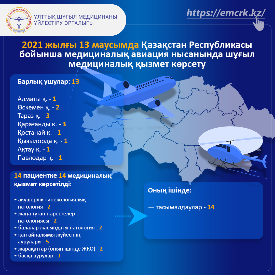 2021 жылғы 13 маусымда Қазақстан Республикасы бойынша медициналық авиация нысанында шұғыл медициналық көмек көрсету