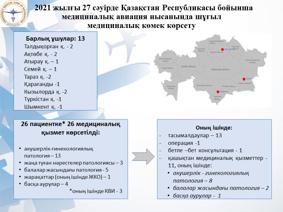 2021 жылғы 27 сәуірде Қазақстан Республикасы бойынша медициналық авиация нысанында шұғыл медициналық көмек көрсету