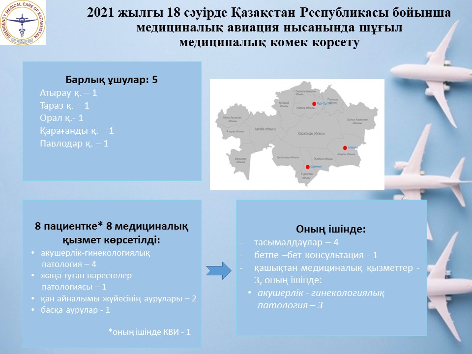 2021 жылғы 18 сәуірде Қазақстан Республикасы бойынша медициналық авиация нысанында шұғыл медициналық көмек көрсету