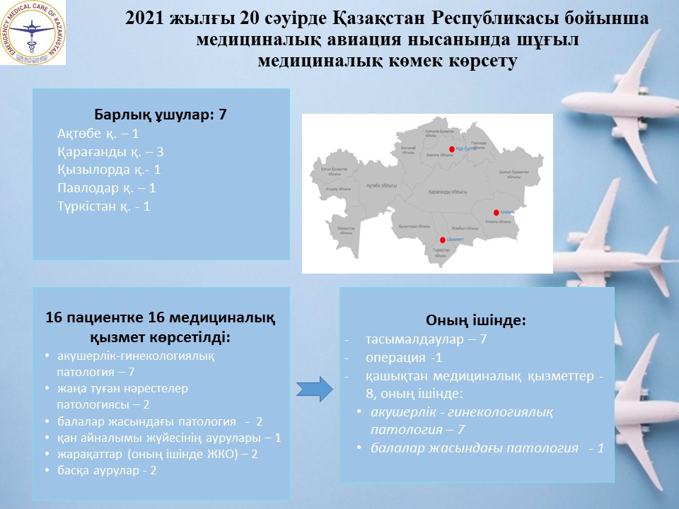 2021 жылғы 20 сәуірде Қазақстан Республикасы бойынша медициналық авиация нысанында шұғыл медициналық көмек көрсету