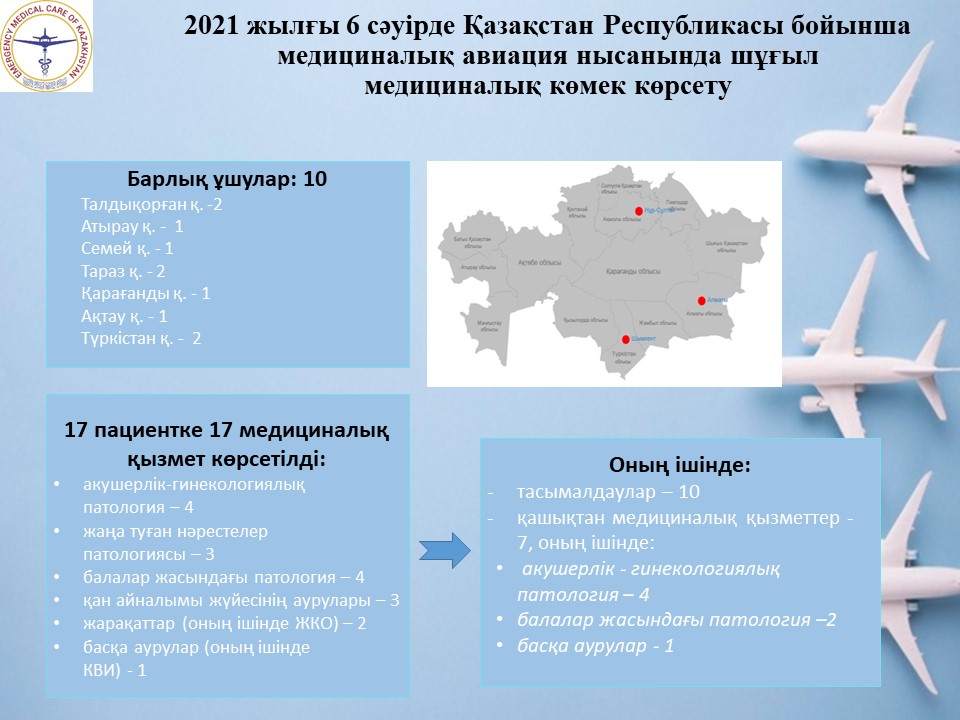 2021 жылғы 6 сәуірде Қазақстан Республикасы бойынша медициналық авиация нысанында шұғыл медициналық көмек көрсету