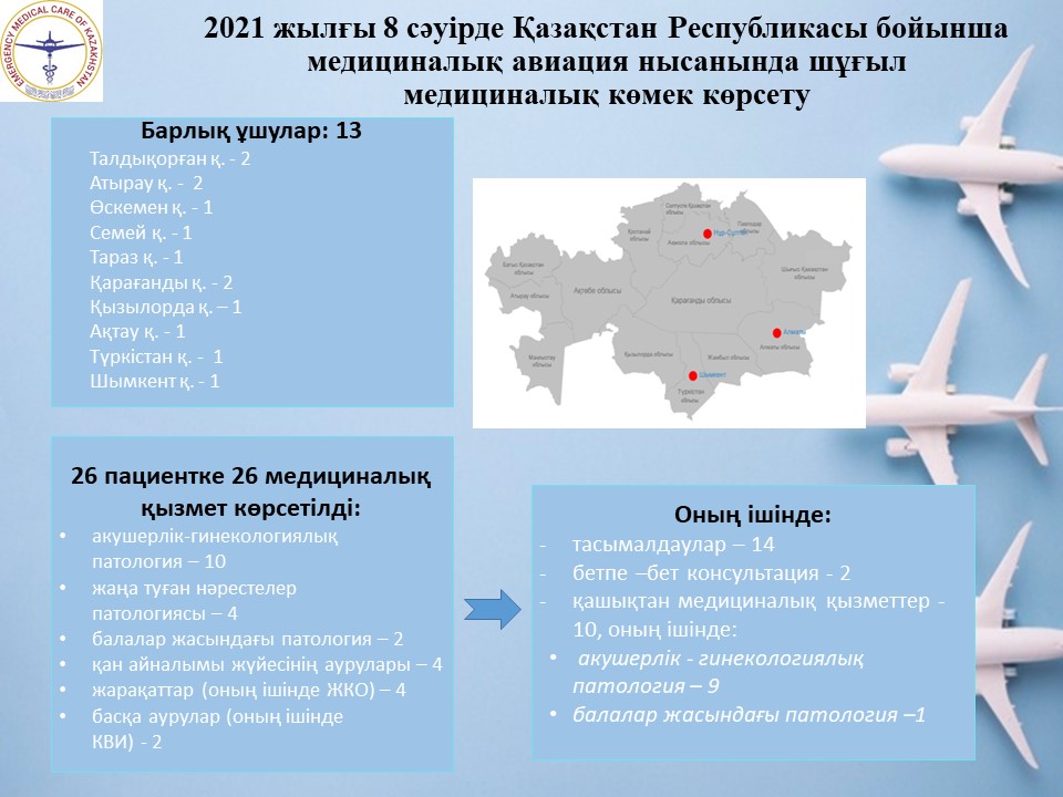 2021 жылғы 8 сәуірде Қазақстан Республикасы бойынша медициналық авиация нысанында шұғыл медициналық көмек көрсету