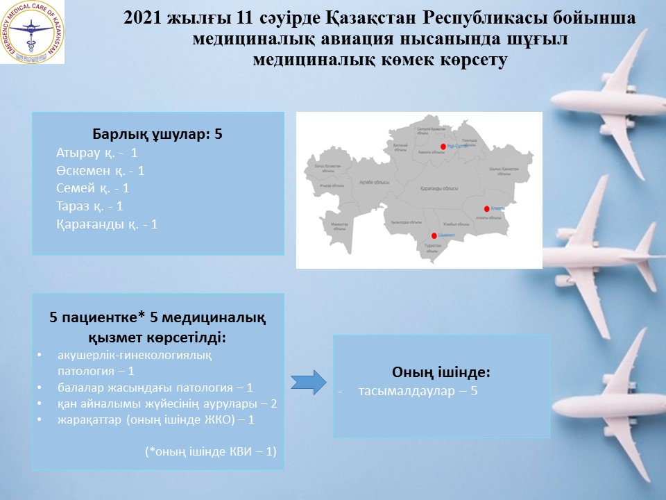 2021 жылғы 11 сәуірде Қазақстан Республикасы бойынша медициналық авиация нысанында шұғыл медициналық көмек көрсету