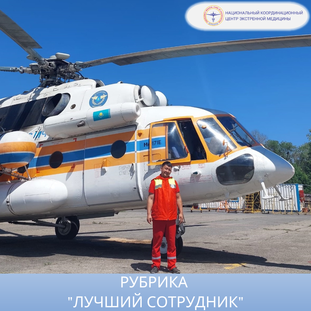 Лучшим сотрудником Представительства г.Алматы Национального координационного центра экстренной медицины, выполнившим за 11 месяцев 2022 года 23 вылета, является фельдшер мобильной бригады медицинской авиации Сыздыков Р.Н.