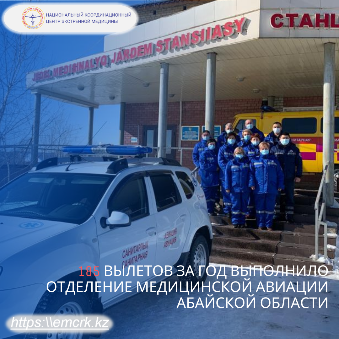 За 2022 г. региональными мобильными бригадами медицинской авиации Абайской области было выполнено 185 вылетов, обслужено 222 пациента. Осуществлено 210 транспортировок, выполнено 7 операций в условиях районных больниц, проведено 5 очных консультаций.