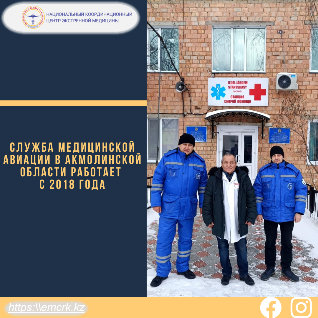 С целью улучшения оперативности качества оказываемых экстренных медицинских услуг населению, с 2018 года в Акмолинской области при Областной станции скорой медицинской помощи действует отделение медицинской авиации.