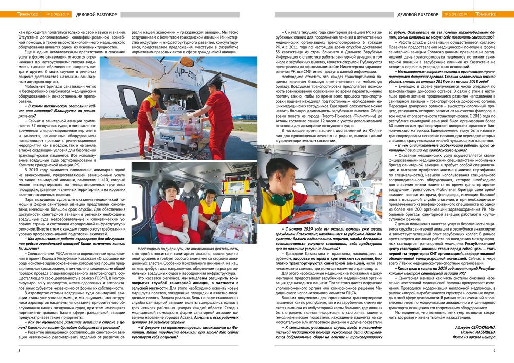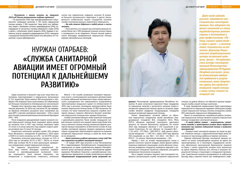 Нуржан Отарбаев: "Служба санитарной авиации имеет огромный потенциал к дальнейшему развитию"