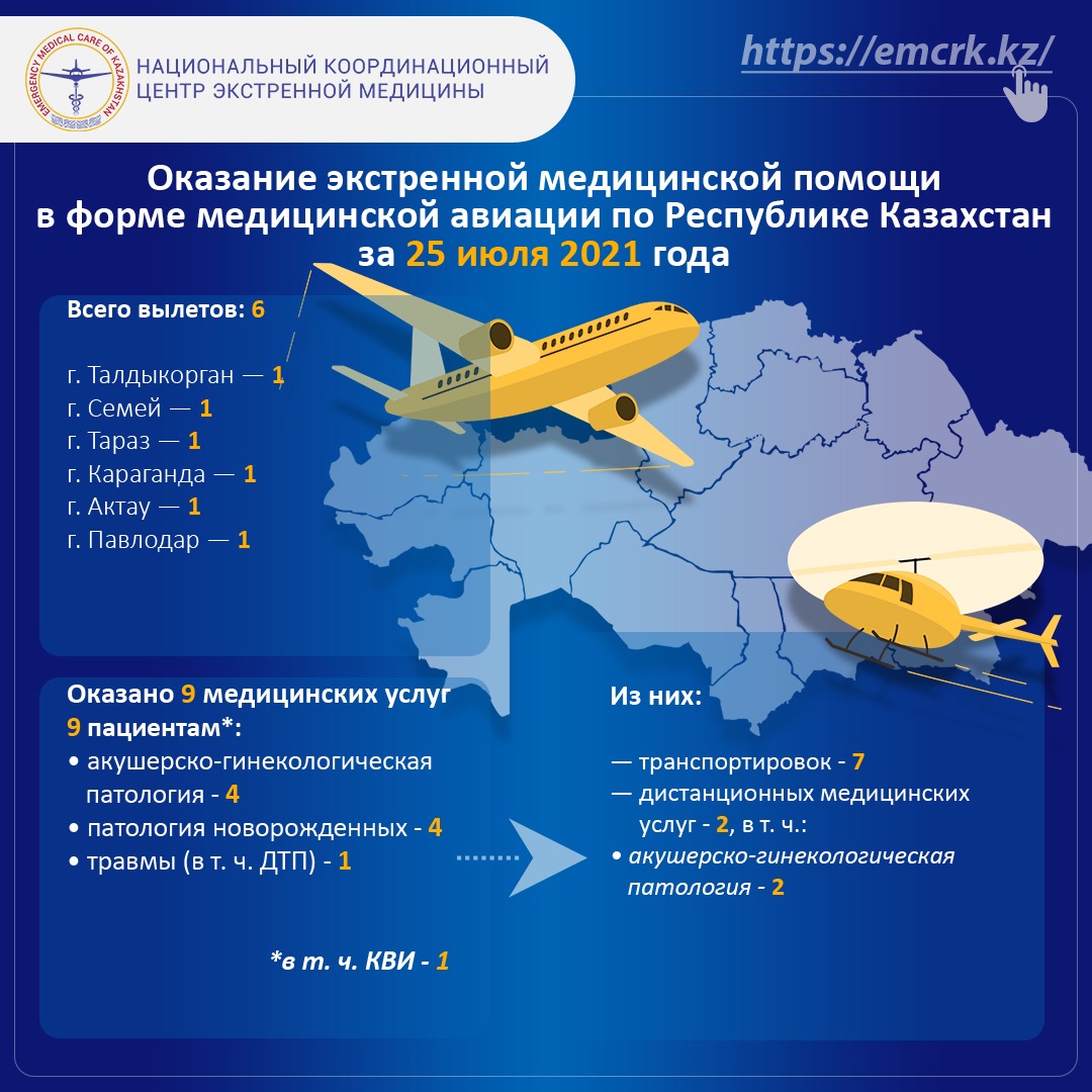 25 июля мобильная бригада медицинской авиации в составе врача неонатолога - реаниматолога и двух фельдшеров транспортировала новорожденных малышей в г. Семей.