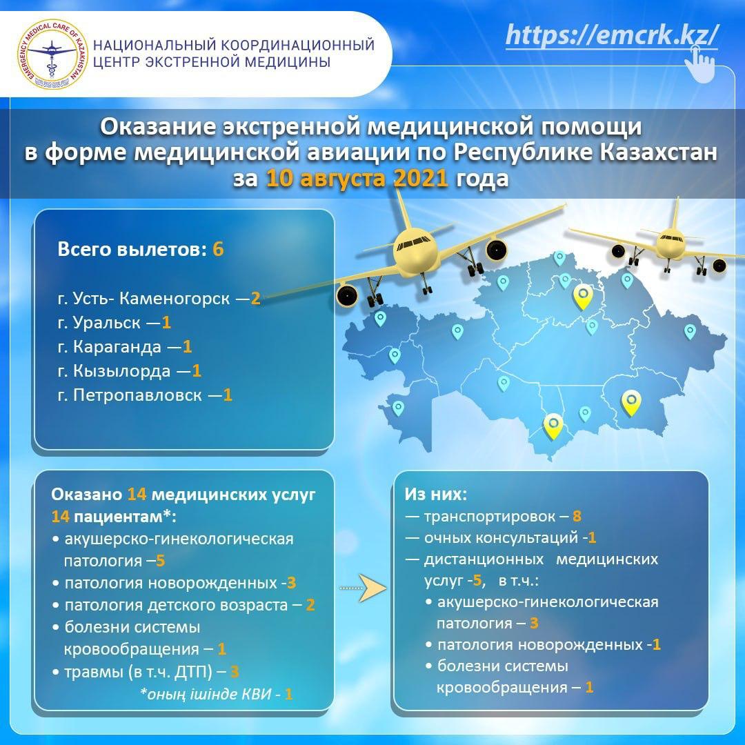 Вторым пациентом спецборта медицинской авиации был 27-летний мужчина, который проходил лечение в центральной больнице г.Балхаш с диагнозом «множественные переломы шейных позвонков». В связи с необходимостью проведения срочного оперативного лечения, пациента транспортировали в Карагандинскую многопрофильную больницу им. профессора Макажанова.
