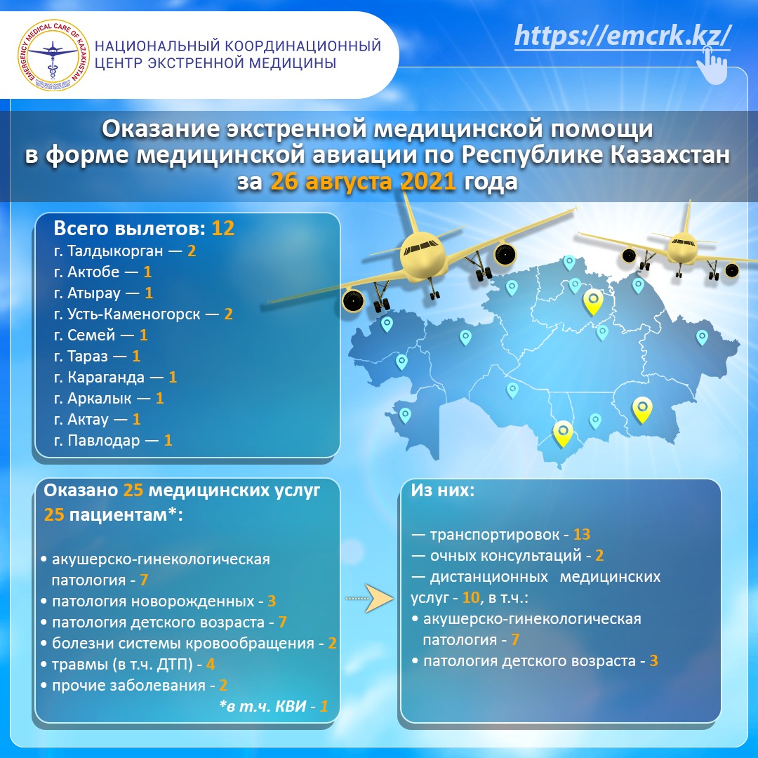 Этим же бортом была транспортирована женщина, получившая бытовую травму. 25 августа была доставлена бригадой скорой медицинской помощи в центральную больницу г. Балхаш и, по тяжести состояния, госпитализирована в отделение реанимации с диагнозом «Сочетанная травма. Множественные переломы ребер, открытый оскольчатый перелом бедренной кости, травматический шок».