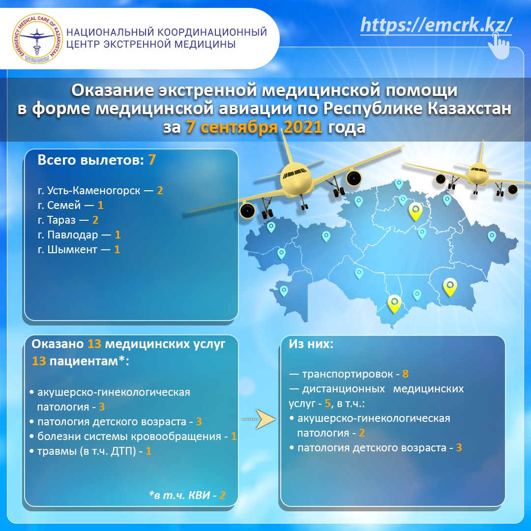 Принимая во внимание необходимость дальнейшего лечения в профильном нейрохирургическом отделении, а также отсутствие в районной больнице профильного специалиста, 7 сентября 2021 года пациентка была транспортирована бортом медицинской авиации в сопровождении врачей реаниматолога, нейрохирурга и фельдшера медицинской авиации в городскую многопрофильную больницу г.Тараз.