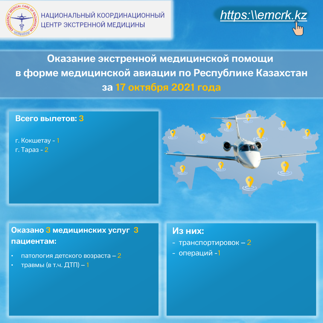 Оказание экстренной медицинской помощи в форме медицинской авиации по Республике Казахстан за 17 октября 2021 года