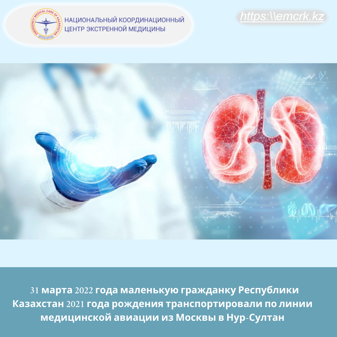 31 марта Национальным координационным центром экстренной медицины был организован вылет воздушного судна в г. Москву для транспортировки малышки в Национальный научный центр материнства и детства г. Нур-Султан