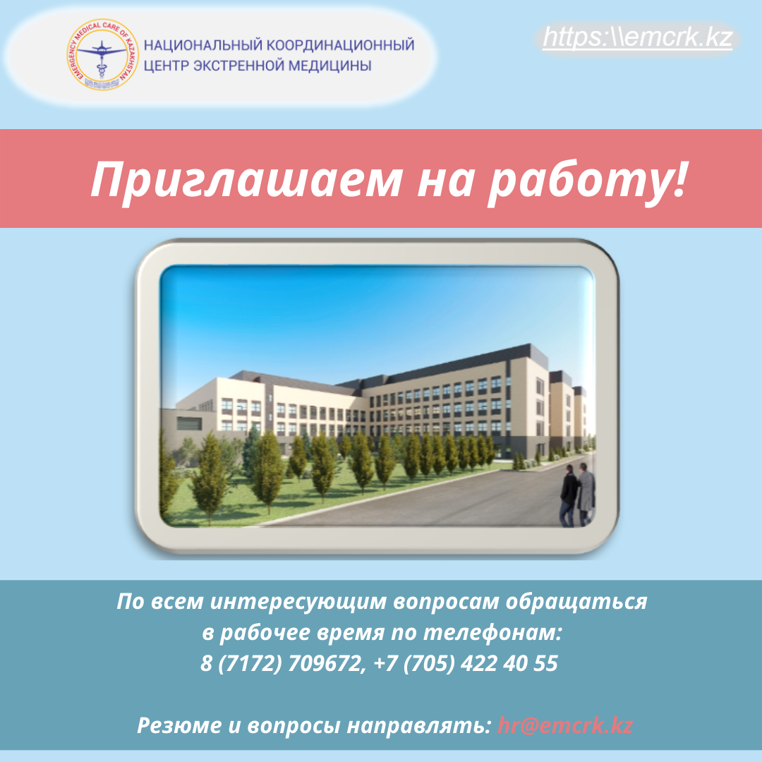 Национальный координационный центр экстренной медицины объявляет конкурс на вакантные должности в новую многопрофильную больницу (стационарная помощь) в г. Нур – Султан, по следующим медицинским специальностям: