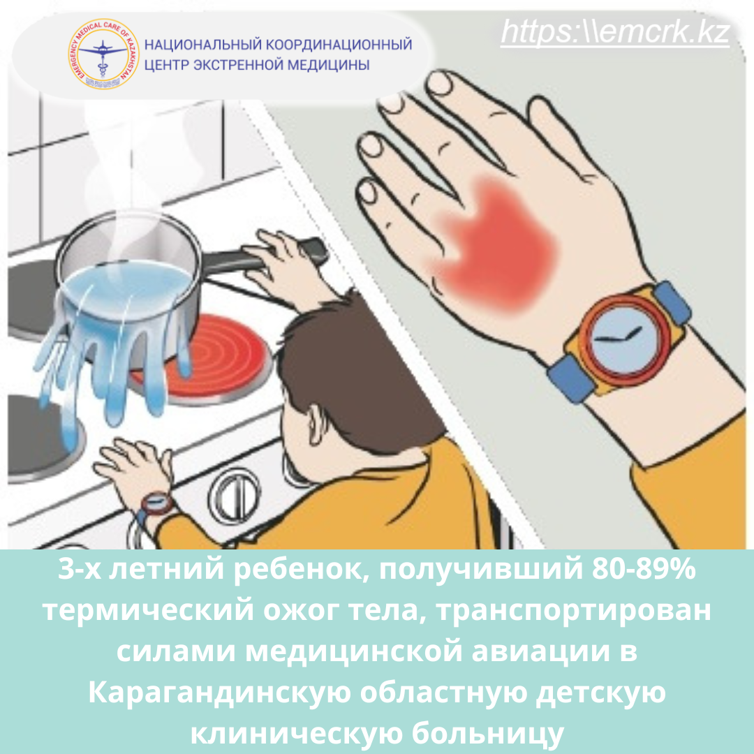 В Центральную районную больницу Жанааркинского района с. Атасу поступил 3-х летний ребенок с термическими ожогами, площадью поражения 80-89% IIIА степени.
